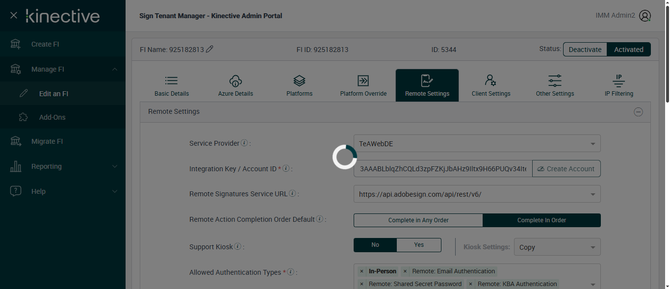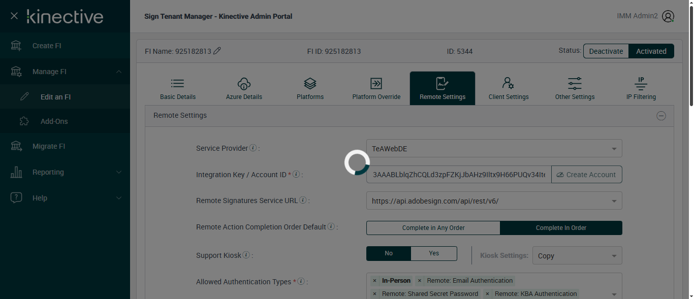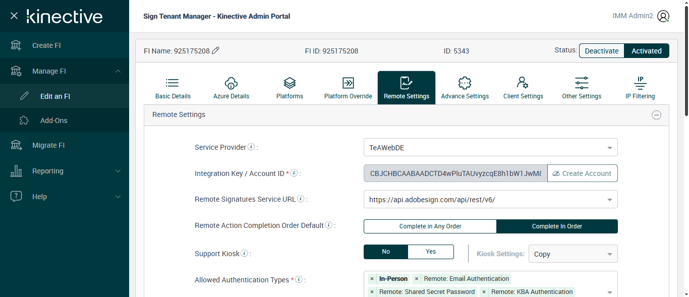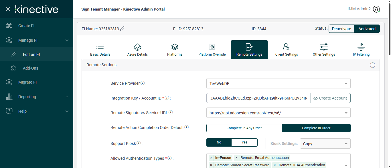 | {ZIP=, Login_User_ID=immadmin2@immesignqa.onmicrosoft.com, RemoteSettings=Ad Hoc Document,Reusable Templates,Manage Remote Agreements, FiStatus=, WebForm=, AdobeKey=, RemoteAgreement=, FiAdmin_LastName=, Name=, LocalDomain=immtestcu, Edit_UserID=billteller@immtestcu.onmicrosoft.com,janedoe@immtestcu.onmicrosoft.com, Adhoc_Doc=, eSignPlus=, RtmAuthTypes=, User_ID=, Fully_Intgrt_Key=, IntegrationType=Fully Integrated, AdvaceSettings=, SendInBulk=, RemoteSign=Enable, DrpSpot=, Manager User Email ID=, RemoteSign_ManageFI=, Reusable_Temp=, AZDomain=immtestcu.onmicrosoft.com, VerifastEDays=, LCEvalDays=, State=, LoanCoupon=, Login_Password=iMM@2023, Country=, ClientID=3AAABLblqZhCQLd3zpFZKjJbAHz9Iltx9H66PUQv34Itep5CnjFb_Ehcl4GOj6Tx0Y5dNSNcgnfoFtmjwvBuopeEtD4QtE_yU, Domain=, anonymusFI=true, FIID=, Key=, FiAdmin_FirstName=Admin, Dictionary=TeSign;XPLN, Sign_RmtAgree_NotChecked=Send In Bulk,Web Form, StarterEvalDays=, Description=verify Remote Agreement Options When Remote Signatures Enabled - Fully Integrated Key - Anonymus FI, StarterChecks=, newFIID=, eSignURL=https://esignplusqa.immesign.com/TEAASP/Login.aspx, E-Vault=, Filepath=, TestID=verifyRemoteAgreementOptionsWhenRemoteSignaturesEnabled, PlusFI=, FiAdmin_UserID=fiadmin, EditFIAdmin_FName=Billi,Jeny, FICreated=, User Email ID=, Verifast=, LacerPro=, Session URL=https://esignnonprod.immesign.com/qa/tenantmanager/, GlobalAdmin=cuadmin@immtestcu.onmicrosoft.com, TypeOfUser=, eValultDays=, UserName=, ManagerExist=, Manager User Display Name=, Manager User ID=, Sign_Password=nimdaif, DrpEvalDays=, EditFiadmin_LName=Teller1,Andy, Sign_RmtAgree_checked=Ad Hoc Document,Reusable Templates,Manage Remote Agreements} |