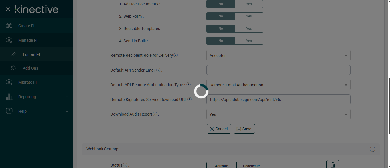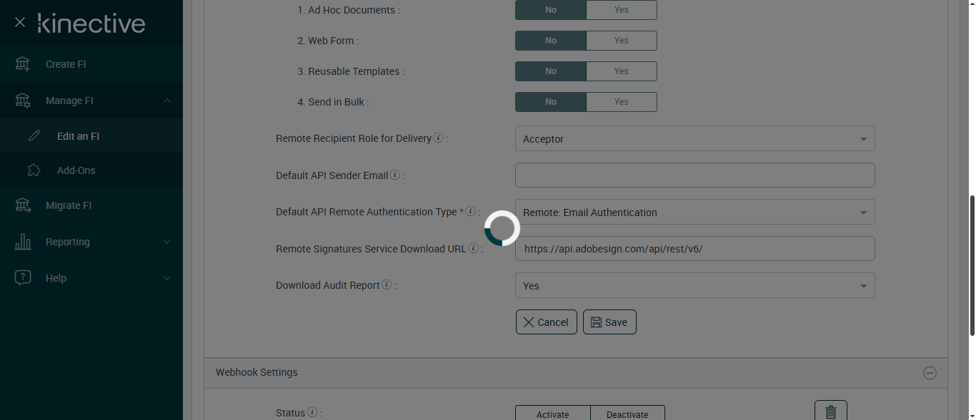 Do you want to proceed? Successfully validated deactivate message There are open sessions in this FI. Deactivating an FI will result in losing those sessions.