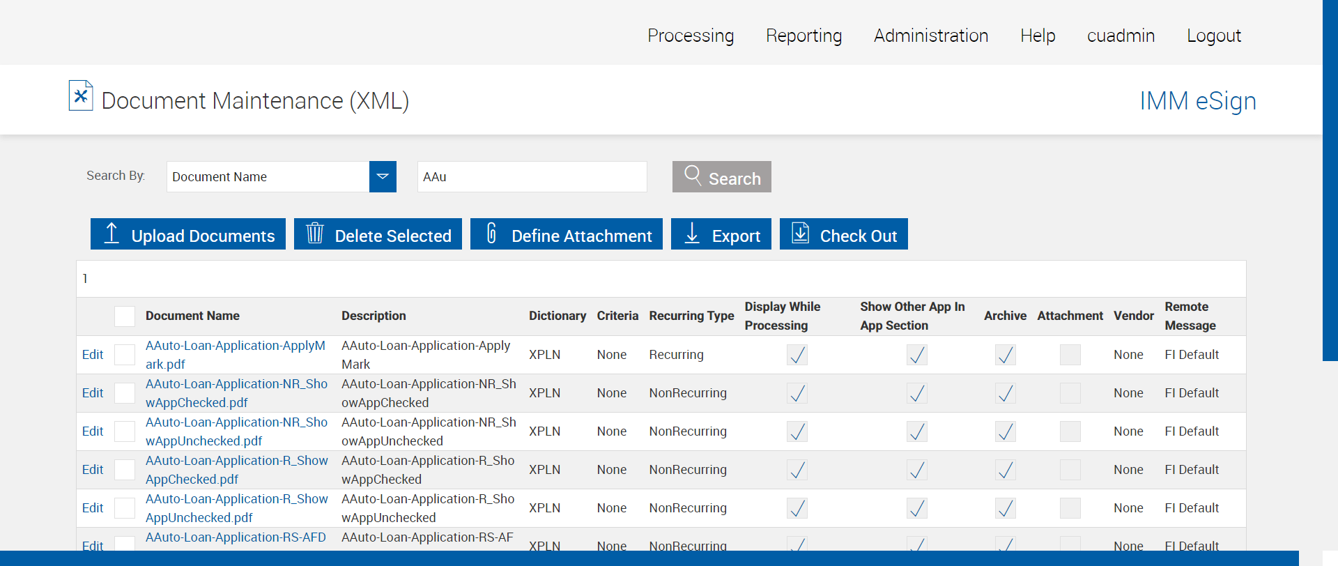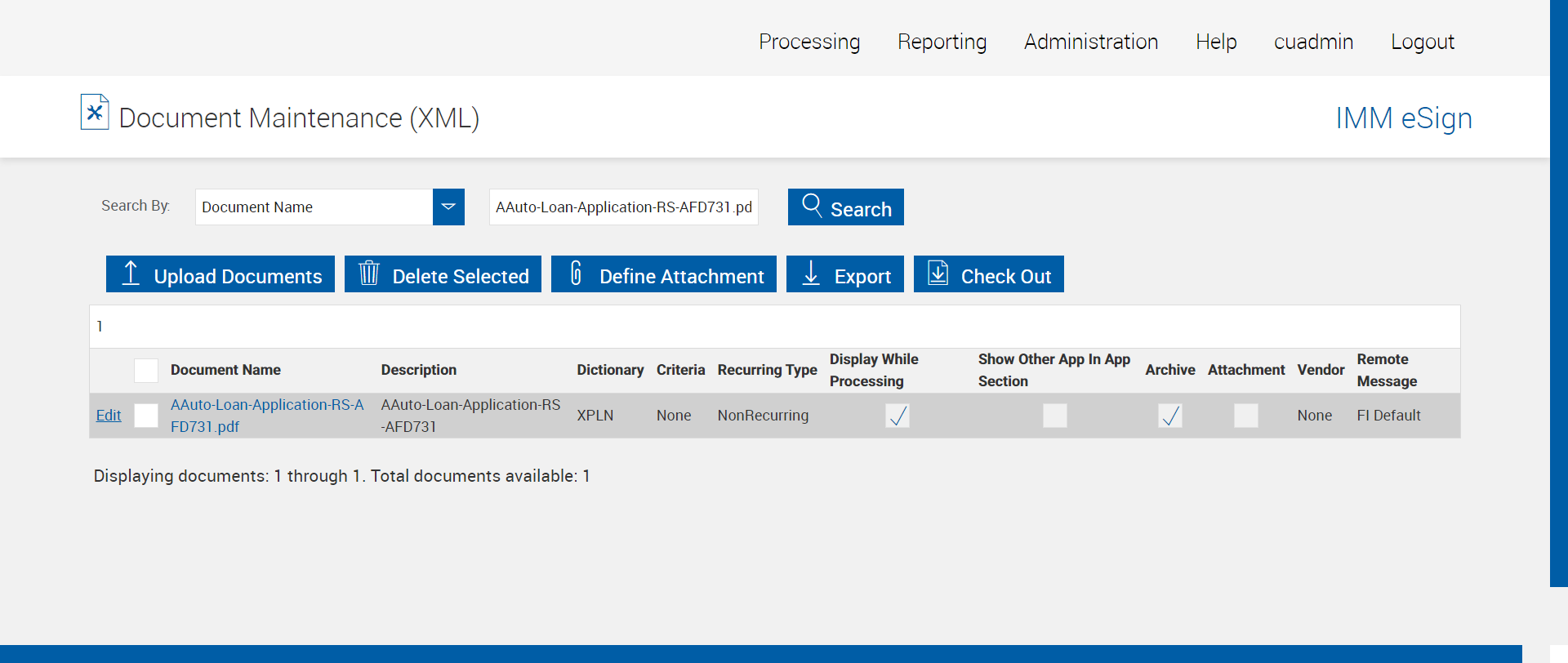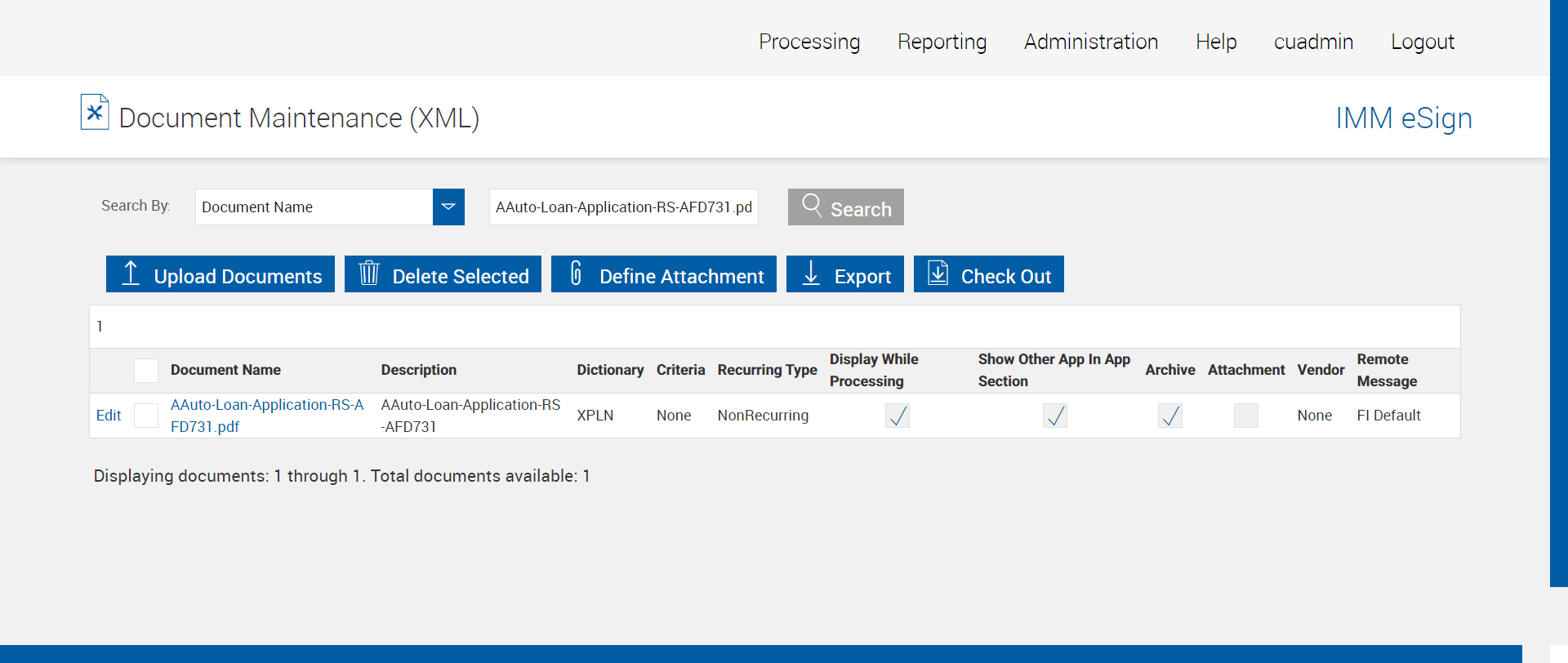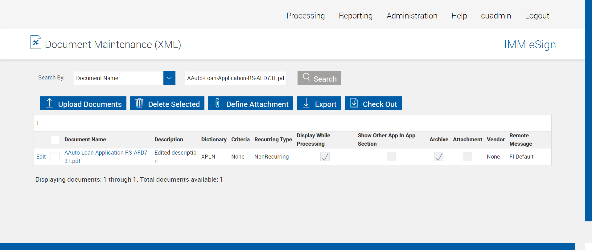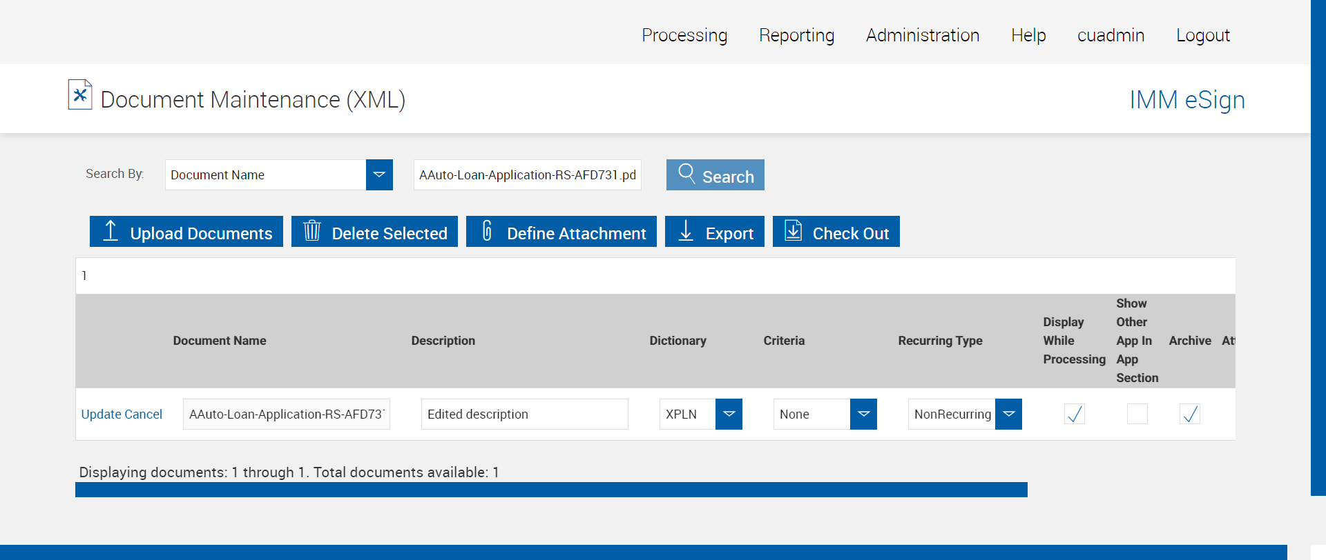 | 06:27:41 PM | Navigates to Documents Maintenance (XML) Page | |