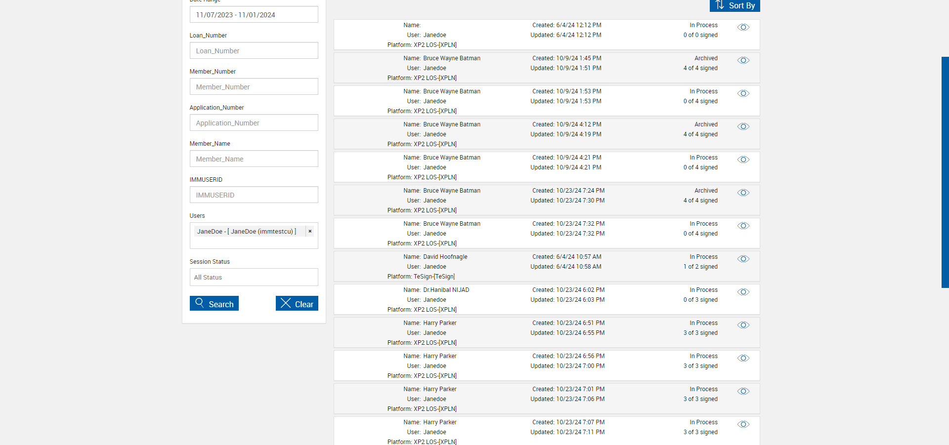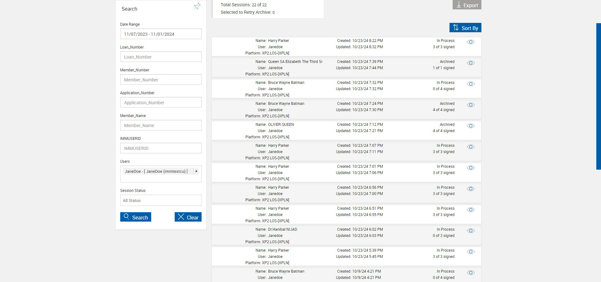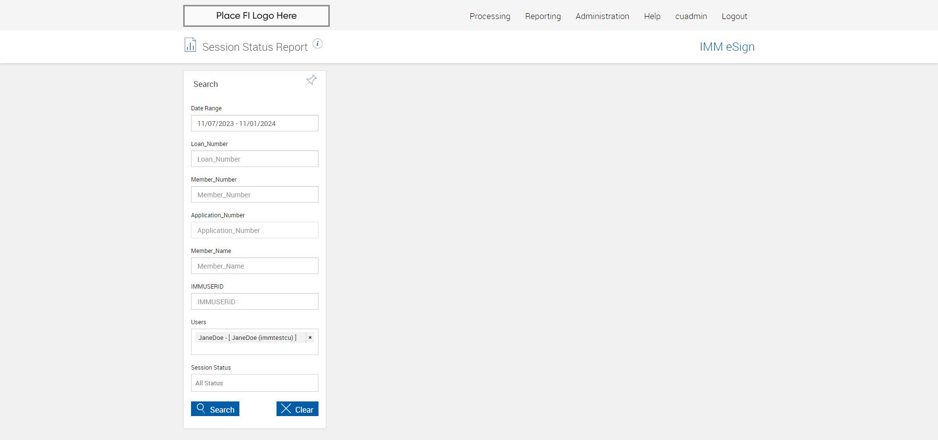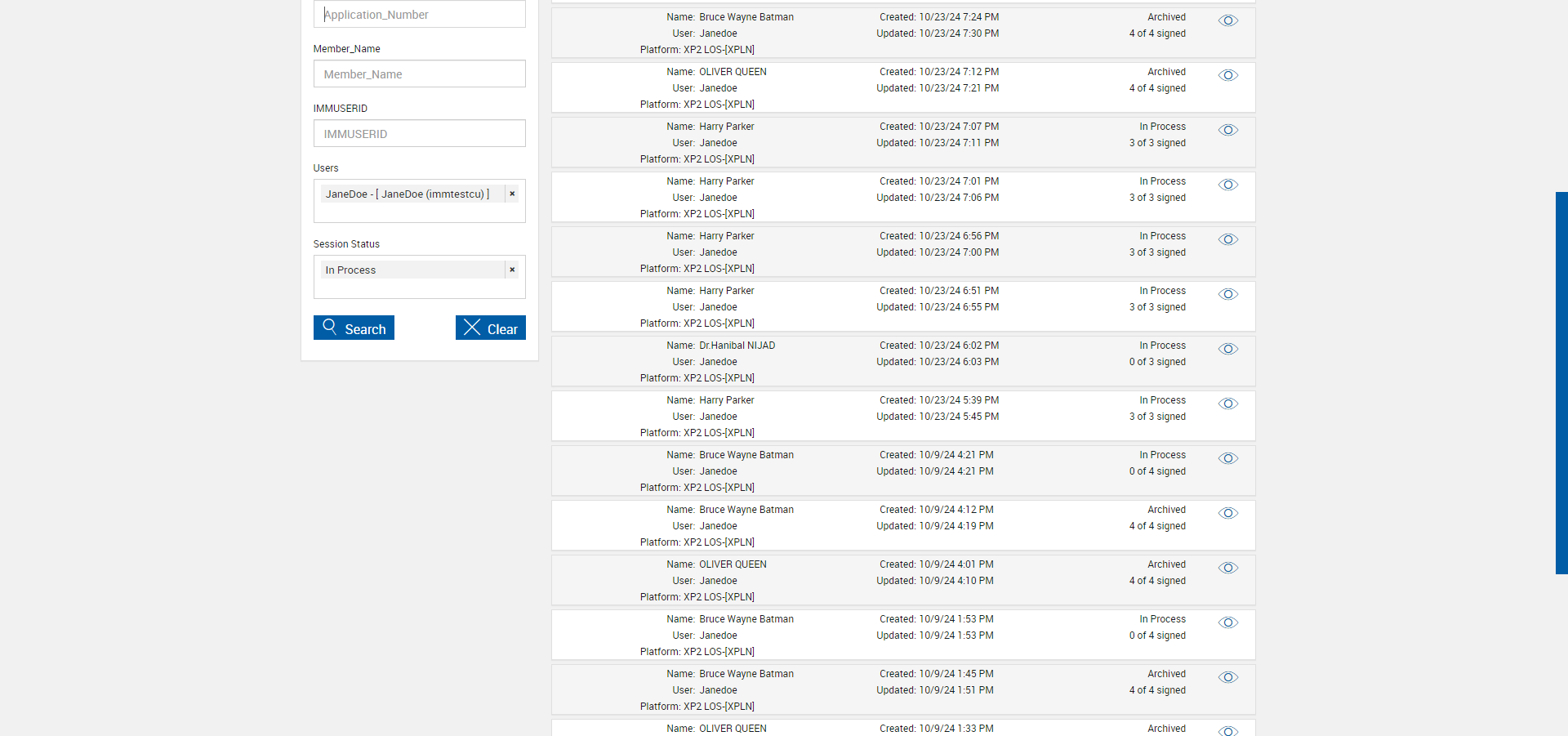 | 05:49:21 PM | Expected: All the UI elements - Date Range, Member Name, Member Number, Account Number, Application Number, Docment Set Name, Users - Drop down, Session Status - Drop down should be displayed Actual(Passed): All the UI elements are displayed [ScreenShot] |