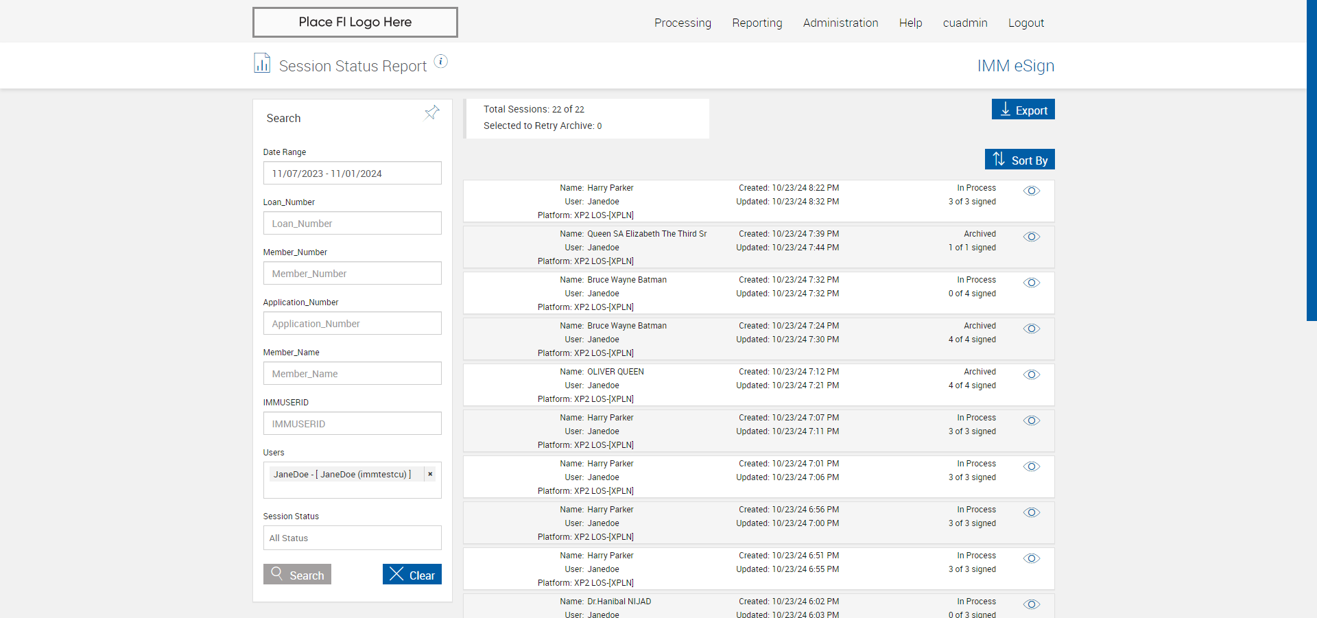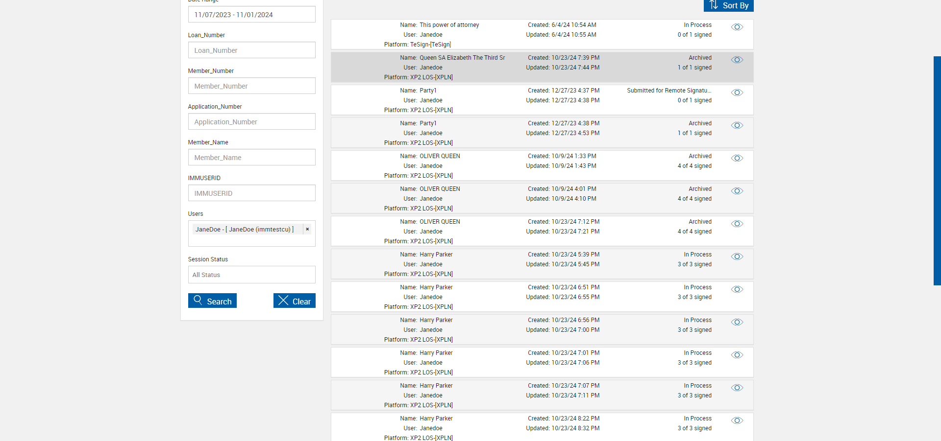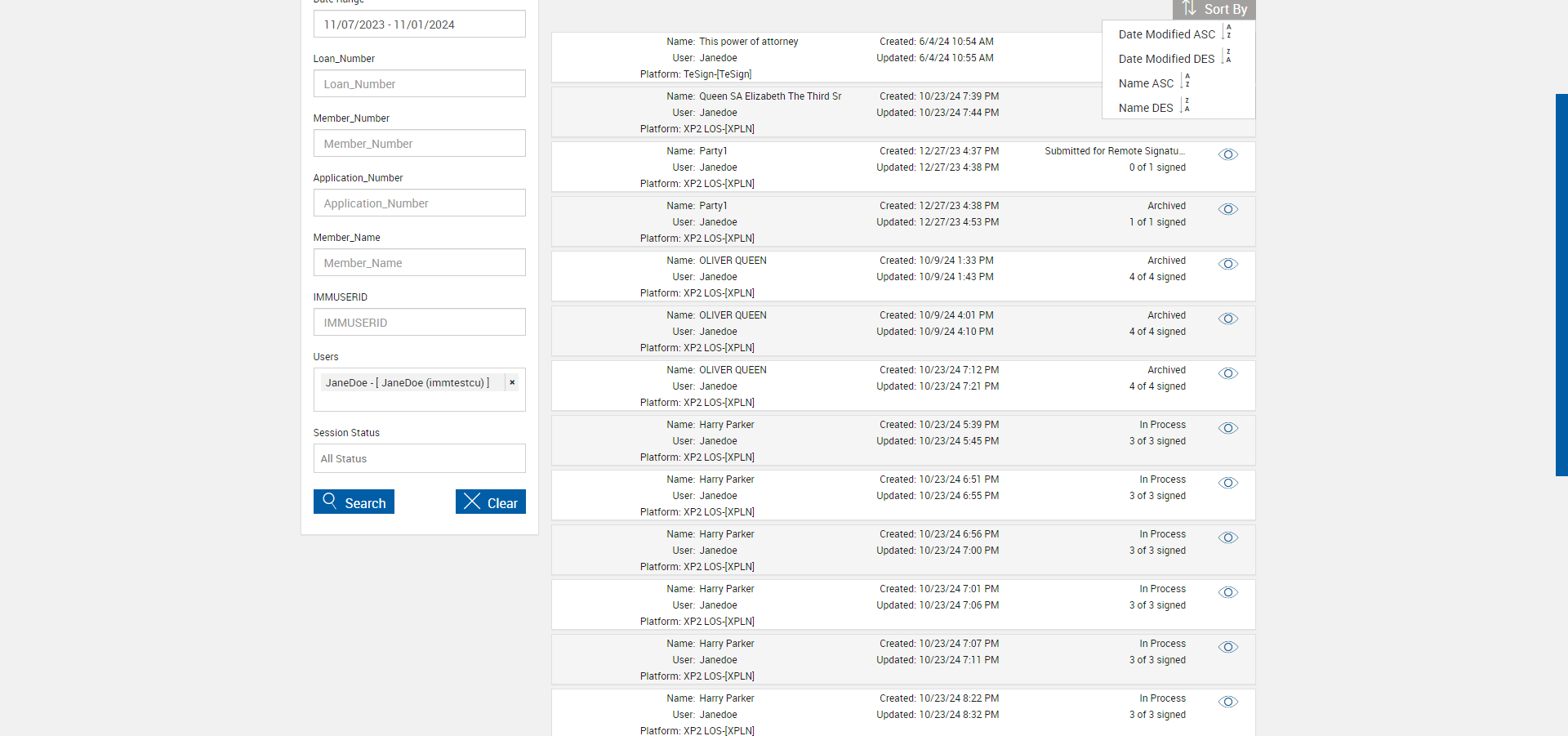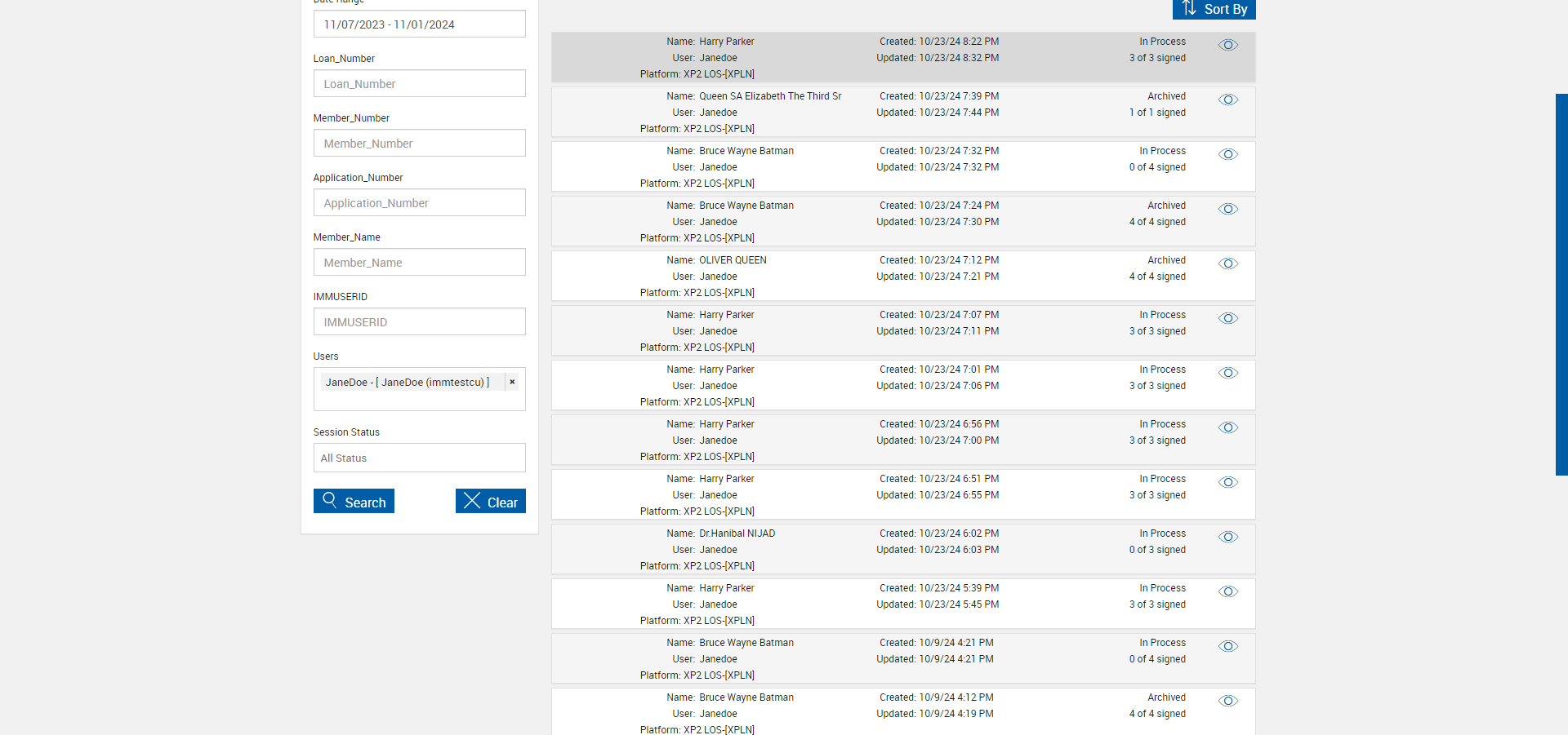 | 05:49:21 PM | Expected: All the UI elements - Date Range, Member Name, Member Number, Account Number, Application Number, Docment Set Name, Users - Drop down, Session Status - Drop down should be displayed Actual(Passed): All the UI elements are displayed [ScreenShot] |