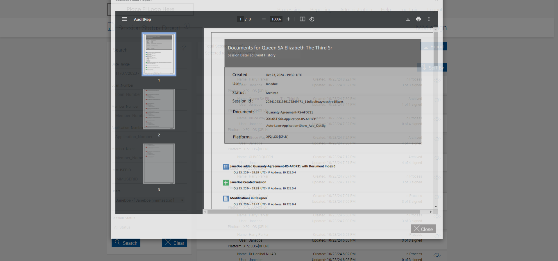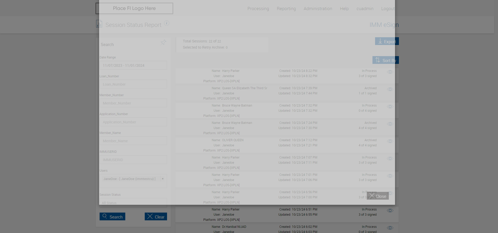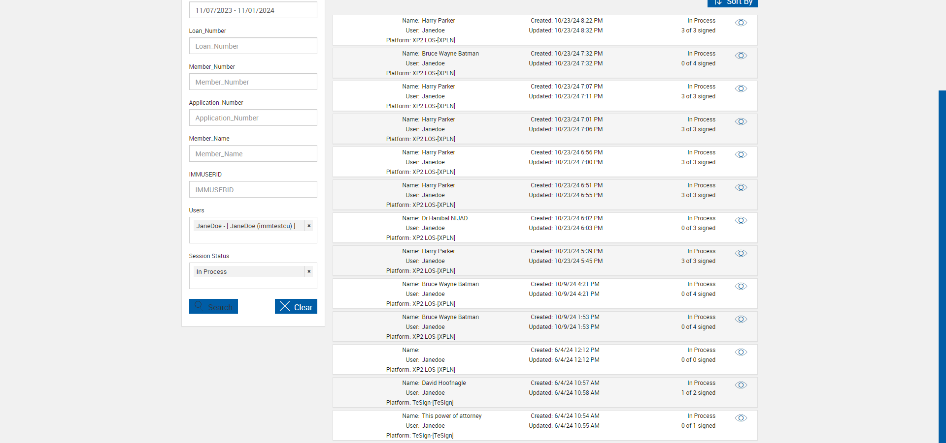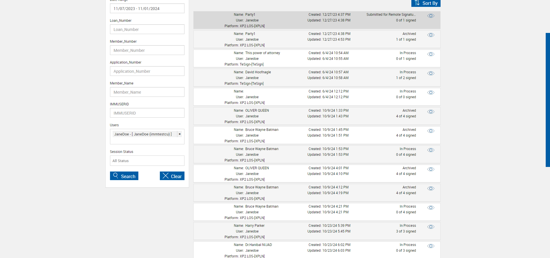 | 05:49:21 PM | Expected: All the UI elements - Date Range, Member Name, Member Number, Account Number, Application Number, Docment Set Name, Users - Drop down, Session Status - Drop down should be displayed Actual(Passed): All the UI elements are displayed [ScreenShot] |