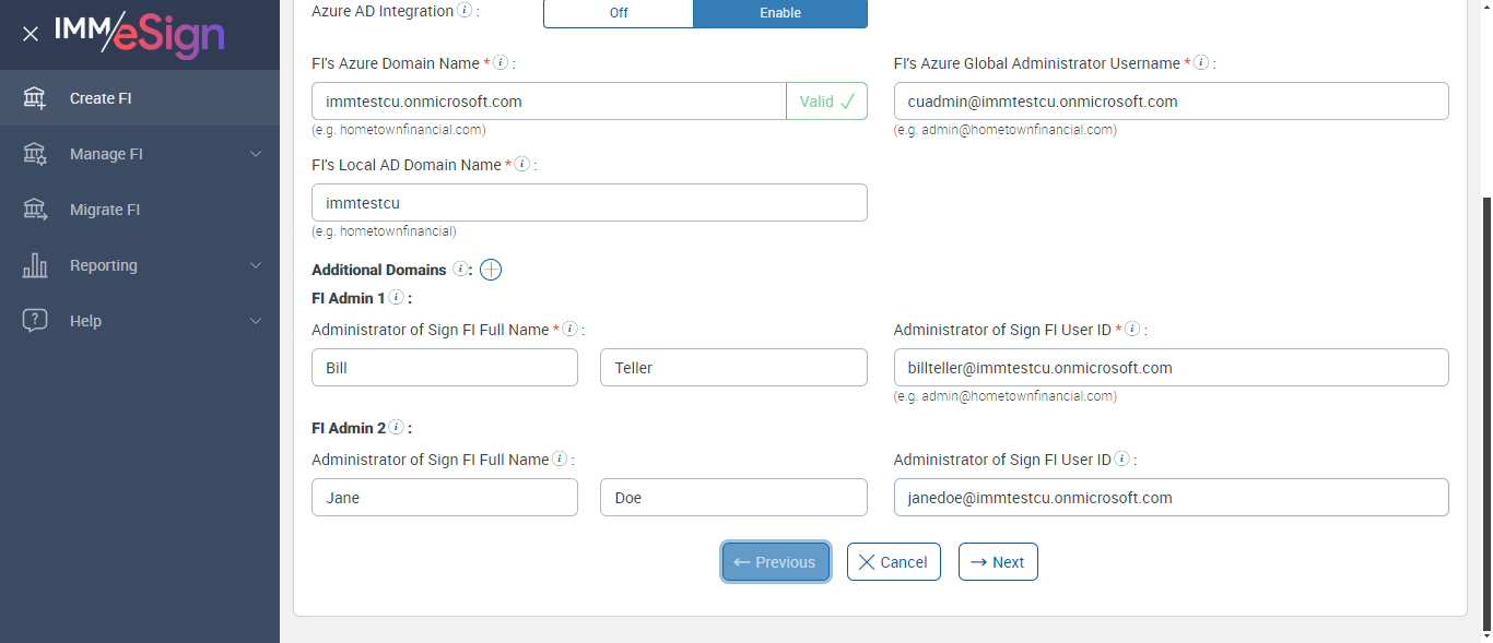 | {ZIP=, FiAdmin_FirstName=Bill,Jane, Dictionary=TeSign;XPLN, StarterEvalDays=, Description=Create Fi With Fi Admin1 and Fi Admin 2 When Remote Signature Enabled, Login_User_ID=immadmin2@immesignqa.onmicrosoft.com, FiStatus=Completed, StarterChecks=Off, eSignURL=https://esignplusqa.immesign.com/TEAASP/Login.aspx, E-Vault=Off, FiAdmin_LastName=Teller,Doe, Filepath=, Name=AD, LocalDomain=immtestcu, TestID=CreateFiwithFiAdmin1andFiAdmin2, FiAdmin_UserID=billteller@immtestcu.onmicrosoft.com,janedoe@immtestcu.onmicrosoft.com, Verifast=Off, eSignPlus=Off, LacerPro=off, RtmAuthTypes=InPerson,Email,Password,KBA,Phone,GovernmentID,, Notes=, Session URL=https://esignnonprod.immesign.com/qa/tenantmanager/, GlobalAdmin=cuadmin@immtestcu.onmicrosoft.com, RemoteSign=Enable, TypeOfUser=IMM Admin2, eValultDays=, DrpSpot=Off, ErrorMsg=, Address2=, AZDomain=immtestcu.onmicrosoft.com, Address3=, VerifastEDays=, Address1=, City=, WrongAZDomain=, LCEvalDays=, State=, LoanCoupon=Off, Login_Password=iMM@2022, WrongFIID=, DrpEvalDays=, Country=, ClientID=3AAABLblqZhCPfuU-npiCakOjy5Ut75_7222WMCDdpSBYYA0z9PZE7hXvVdJDXKIzDh0zkAVwUGLc4pVh3cU31w119aZm6Uu_, FIID=AD, Key=} |