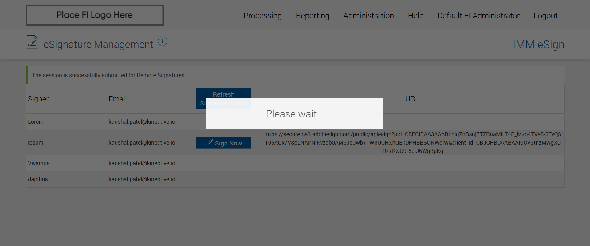 Successfully navigated to the 'eSignature Management' page [ScreenShot]