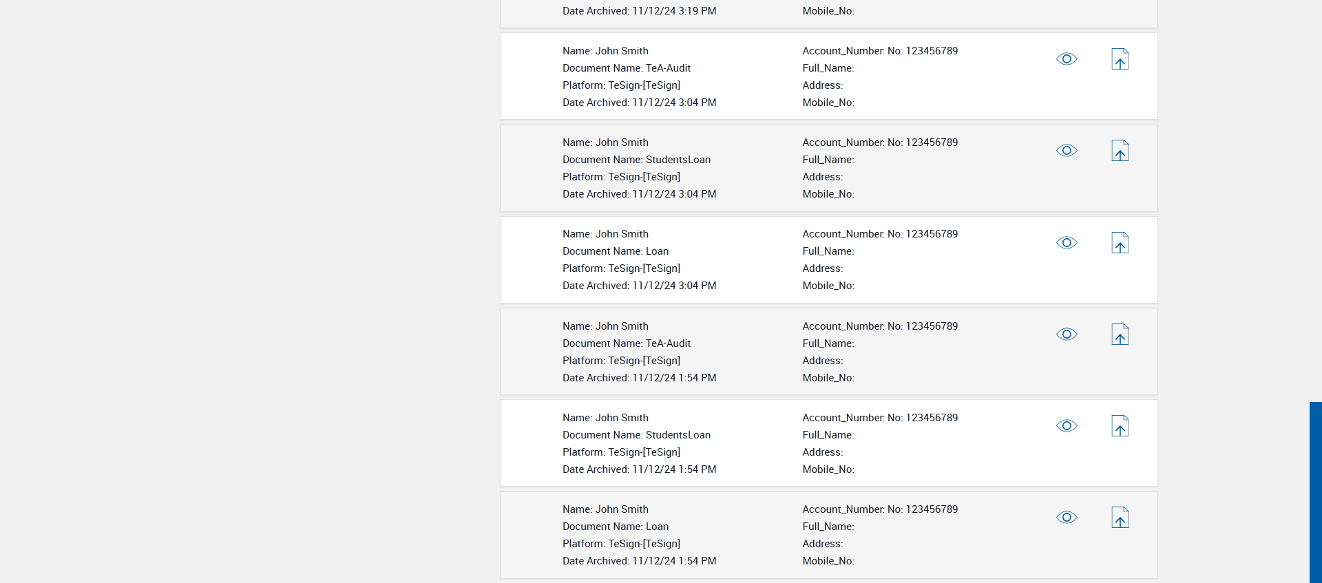 | {Tenant_URL=, EditFullName=, Email=, Platform=TeSign-[TeSign], IsPlusFI=FALSE, ShortName=, PartyName=, PartiesToView=, AttachmentName=, ReceivedFromNames=, TextField=, ArchiveOptions=, DocumentName=LOAN_APPLICATION, Dropdownvalues=, toggleStatus=Successful,Not Applicable,Failed,All, Workflow=SignatureStatus, AttachmentTypeOption=, NumOfAttachments=, Folderpath=, NameDescription=, Export_Values=, UserType=, Tenant_User=, Group=, Description=verify Archive Status And Manage Completed Session Documents On The Search Completed Page, Message=, FileName=, EditShortName=, Phone_Number=, Step Name=, Filepath=src/main/resources/testdata/files/documentRTS/Students Loan.pdf,src/main/resources/testdata/files/documentRTS/513BA.pdf,src/main/resources/testdata/files/documentRTS/XNAAP.pdf,src/main/resources/testdata/files/documentRTS/XX11993.pdf,src/main/resources/testdata/files/documentRTS/005BA1.pdf,src/main/resources/testdata/files/documentRTS/LOAN_APPLICATION.pdf, DocumentPermission=, TestID=verifyArchiveStatusAndManageCompletedSessionDocumentsOnTheSearchCompletedPage, FItype=, Required=, IndexSource=StudentsLoan,XNAAP,XX11993, Document Names=, Inbox=, Password=iMM@2022, Path=src/main/resources/testdata/files/DoNotArchive.Zip, Tenant_Password=, UserName=, Comments=, Email_Id=, Index_Field_Name=, Sender_Email_Id=, FI_ID=qaesignfi, Vendor=None,None,None, From=, TemplatePermission=, Subject=, Date=, Response=, Type=, AttachmentPath=src/main/resources/testdata/files/Attachments/Delic.pdf,src/main/resources/testdata/files/Attachments/paystub.pdf,src/main/resources/testdata/files/Attachments/UtilityBillPRIMARY1.pdf, Username=cuadmin@immtestcu.onmicrosoft.com, FullName=StudentsLoan,513BA,XNAAP,XX11993,005BA1,LOAN_APPLICATION, EditNameDescription=, ErrorMessage=, Export_Fields=} |