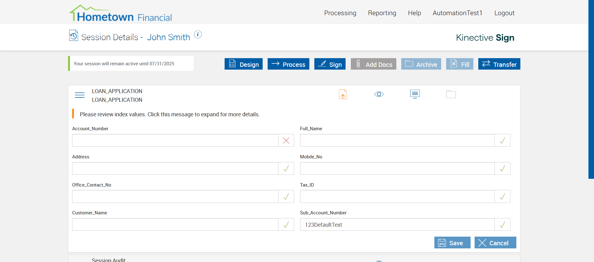 | {Tenant_URL=, EditFullName=, Email=, Platform=TeSign-[TeSign], IsPlusFI=FALSE, ShortName=AlwaysArchiveAttachment,ArchiveOnActionAttachment,NeverArchiveAttachment, PartyName=Jane Smith, PartiesToView=, AttachmentName=AlwaysArchiveAttachment,ArchiveOnActionAttachment,NeverArchiveAttachment, ReceivedFromNames=, TextField=, ArchiveOptions=Attach01,Attach02,Attach03,Attach04, DocumentName=LOAN_APPLICATION, Dropdownvalues=, toggleStatus=, Workflow=SignatureStatus, AttachmentTypeOption=AlwaysArchiveAttachment,ArchiveOnActionAttachment,NeverArchiveAttachment, NumOfAttachments=, Folderpath=, NameDescription=AlwaysArchiveAttachment,ArchiveOnActionAttachment,NeverArchiveAttachment, Export_Values=, UserType=, Tenant_User=, Group=, Description=verify Process Session With Do Not Archive Options in Search Active Sessions Page, Message=, FileName=, EditShortName=, Phone_Number=, Step Name=, Filepath=src/main/resources/testdata/files/documentRTS/Students Loan.pdf,src/main/resources/testdata/files/documentRTS/XNAAP.pdf,src/main/resources/testdata/files/documentRTS/XX11993.pdf,src/main/resources/testdata/files/documentRTS/513BA.pdf, DocumentPermission=, TestID=verifyProcessSessionWithDoNotArchiveOptionsinSearchActiveSessionsPage, FItype=, Required=, IndexSource=StudentsLoan,XNAAP,XX11993, Document Names=, Inbox=, Password=iMM@2022, Path=src/main/resources/testdata/files/DoNotArchive.Zip, Tenant_Password=, UserName=, Comments=, Email_Id=, Index_Field_Name=, Sender_Email_Id=, FI_ID=qaesignfi, Vendor=None,None,None, From=, TemplatePermission=, Subject=, Date=, Response=, Type=, AttachmentPath=src/main/resources/testdata/files/Attachments/Delic.pdf,src/main/resources/testdata/files/Attachments/paystub.pdf,src/main/resources/testdata/files/Attachments/UtilityBillPRIMARY1.pdf, Username=cuadmin@immtestcu.onmicrosoft.com, FullName=StudentsLoan,XNAAP,XX11993,513BA, EditNameDescription=, ErrorMessage=, Export_Fields=Attach01,Attach02,Attach03,Attach04} |