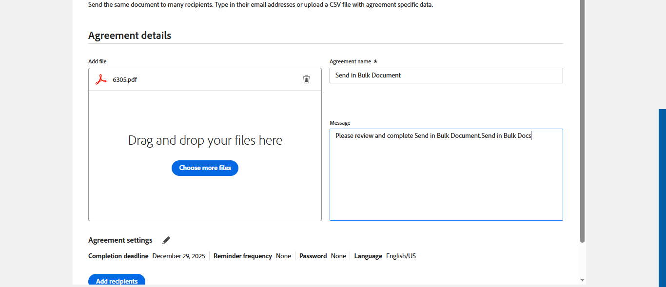 Failed to Send Bulk Agreements to remote [ScreenShot]