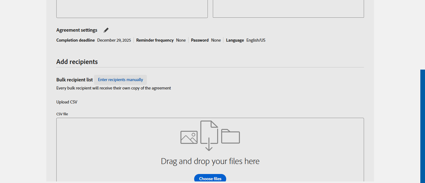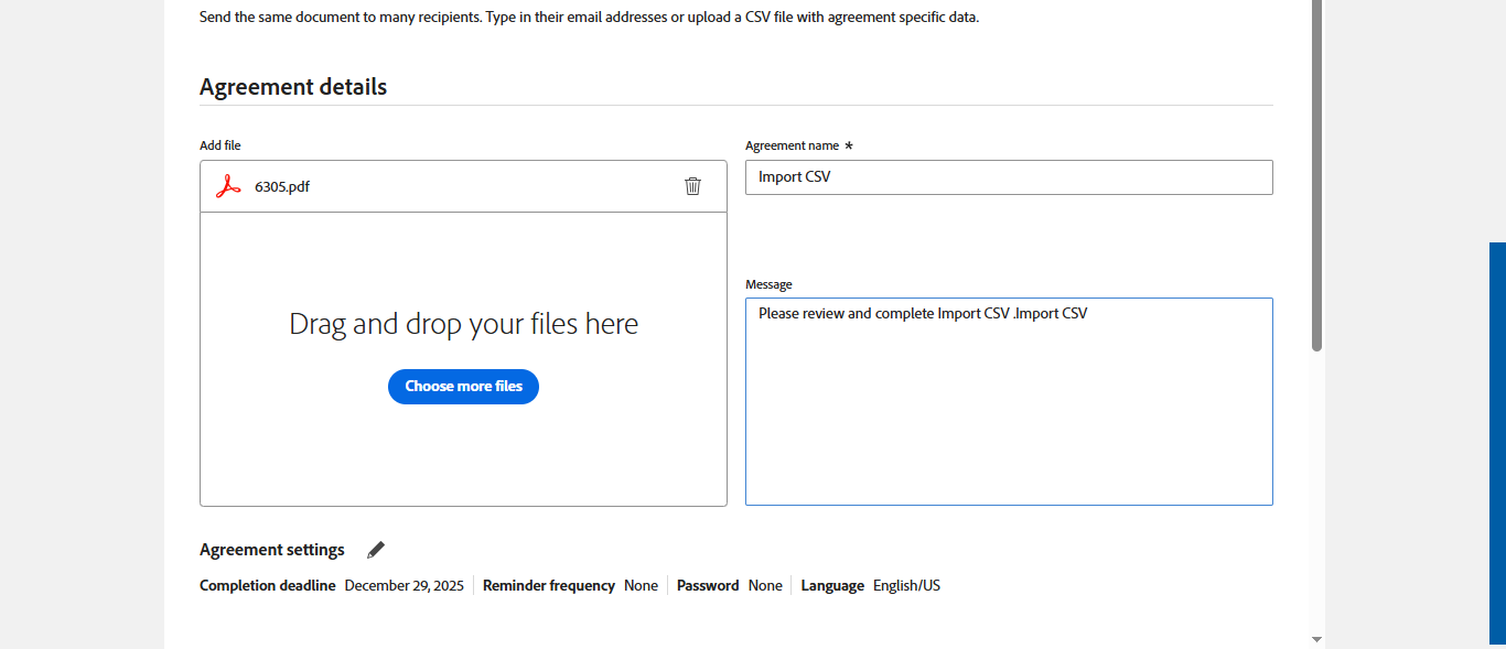 Success message The Bulk send "Import CSV ", containing 3 agreements, has been queued for sending to recipients. |