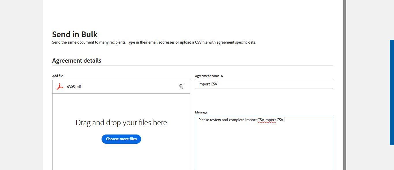 --- 02 Jul 21:17:44 559 - TestCaseID:: verifySendInBulkTransactionWhenImportCSV --- 02 Jul 21:17:50 593 - 6 - Driver::initialize::Get - com.imm.support.WebDriverFactory.get(WebDriverFactory.java:558) **** verify Send In Bulk Transaction When Import CSV **** --- 02 Jul 21:17:57 933 - Page URL:: https://esignplusqa.immesign.com/teaasp/login.aspx --- 02 Jul 21:17:57 933 - 5 - Page Load Wait: (Sync) - com.imm.support.Utils.waitForPageLoad(Utils.java:117) --- 02 Jul 21:17:58 299 - Element is displayed using Selenide:: [[RemoteWebDriver: chrome on Windows 10 (6c8ab559ebe410f7914566af4e056443)] -> xpath: //*[@id='btnSubmit']] Navigated to 'eSign Login' page --- 02 Jul 21:17:58 459 - Element is displayed using Selenide:: [[RemoteWebDriver: chrome on Windows 10 (6c8ab559ebe410f7914566af4e056443)] -> xpath: //input[@id='ctl00_cph1_txtHSFIID']] Entered values for the fields in 'Login' page [ScreenShot] --- 02 Jul 21:17:59 300 - Element is displayed using Selenide:: [[RemoteWebDriver: chrome on Windows 10 (6c8ab559ebe410f7914566af4e056443)] -> xpath: //*[@id='btnSubmit']] --- 02 Jul 21:18:03 853 - Element is displayed using Selenide:: [[RemoteWebDriver: chrome on Windows 10 (6c8ab559ebe410f7914566af4e056443)] -> id: idSIButton9] --- 02 Jul 21:18:08 336 - Element is displayed using Selenide:: [[RemoteWebDriver: chrome on Windows 10 (6c8ab559ebe410f7914566af4e056443)] -> id: idSIButton9] --- 02 Jul 21:18:12 552 - Page URL:: https://login.microsoftonline.com/common/login --- 02 Jul 21:18:12 552 - 3 - Page Load Wait: (Sync) - com.imm.support.Utils.waitForPageLoad(Utils.java:117) --- 02 Jul 21:18:12 643 - Element is displayed using Selenide:: [[RemoteWebDriver: chrome on Windows 10 (6c8ab559ebe410f7914566af4e056443)] -> id: lightbox] --- 02 Jul 21:18:12 732 - Element is displayed using Selenide:: [[RemoteWebDriver: chrome on Windows 10 (6c8ab559ebe410f7914566af4e056443)] -> id: idSIButton9] --- 02 Jul 21:18:21 623 - Page URL:: https://esignplusqa.immesign.com/teaasp/documentmntc.aspx --- 02 Jul 21:18:21 623 - 3 - Page Load Wait: (Sync) - com.imm.support.Utils.waitForPageLoad(Utils.java:117) Login as FiAdmin with Existing FI : adobeuser --- 02 Jul 21:18:24 812 - Page URL:: https://esignplusqa.immesign.com/teaasp/documentmntc.aspx --- 02 Jul 21:18:24 812 - 3 - Page Load Wait: (Sync) - com.imm.support.Utils.waitForPageLoad(Utils.java:117) --- 02 Jul 21:18:24 911 - Element is displayed using Selenide:: [[RemoteWebDriver: chrome on Windows 10 (6c8ab559ebe410f7914566af4e056443)] -> id: btnUpload] --- 02 Jul 21:18:28 123 - Page URL:: https://esignplusqa.immesign.com/teaasp/documentmntc.aspx --- 02 Jul 21:18:28 123 - 3 - Page Load Wait: (Sync) - com.imm.support.Utils.waitForPageLoad(Utils.java:117) --- 02 Jul 21:18:28 210 - Element is displayed using Selenide:: [[RemoteWebDriver: chrome on Windows 10 (6c8ab559ebe410f7914566af4e056443)] -> css selector: .header] --- 02 Jul 21:18:28 293 - Element is displayed using Selenide:: [[RemoteWebDriver: chrome on Windows 10 (6c8ab559ebe410f7914566af4e056443)] -> xpath: //a[text()='Processing']] clicked processing button Found submenu: Create New Session Found submenu: Collected Documents Found submenu: Search Active Found submenu: Search Completed Found submenu: Ad Hoc Document Found submenu: Send in Bulk Successfully verified 'Send in Bulk' is displayed in the Processing Menu [ScreenShot] --- 02 Jul 21:18:31 801 - Element is displayed using Selenide:: [[RemoteWebDriver: chrome on Windows 10 (6c8ab559ebe410f7914566af4e056443)] -> xpath: //a[text()='Processing']] Successfully navigated to 'Manage Remote Agreement' page [ScreenShot] --- 02 Jul 21:19:13 086 - Element is displayed using Selenide:: [[RemoteWebDriver: chrome on Windows 10 (6c8ab559ebe410f7914566af4e056443)] -> xpath: //a[contains(@class,'spectrum-SideNav-itemLink')]] Manage Remote Agreement page displayed successfully [ScreenShot] --- 02 Jul 21:19:16 253 - Element is displayed using Selenide:: [[RemoteWebDriver: chrome on Windows 10 (6c8ab559ebe410f7914566af4e056443)] -> xpath: //a[contains(@class,'spectrum-SideNav-itemLink')]] Successfully Clicked on In progress button [ScreenShot] Agreement Count before creating a new Adhoc Transaction is :83 [ScreenShot] --- 02 Jul 21:19:16 796 - Element is displayed using Selenide:: [[RemoteWebDriver: chrome on Windows 10 (6c8ab559ebe410f7914566af4e056443)] -> xpath: //a[text()='Processing']] Successfully navigated to 'Send in Bulk' page [ScreenShot] Adohoc document page displayed successfully [ScreenShot] --- 02 Jul 21:19:47 667 - Element is displayed using Selenide:: [[RemoteWebDriver: chrome on Windows 10 (6c8ab559ebe410f7914566af4e056443)] -> xpath: //*[text()='Choose files']] Clicked on 'Choose File' Button' [ScreenShot] --- 02 Jul 21:19:48 121 - Element is displayed using Selenide:: [[RemoteWebDriver: chrome on Windows 10 (6c8ab559ebe410f7914566af4e056443)] -> xpath: //div[@class='b5Gu6W_spectrum-Dropzone']] File Dragged and dropped to clipboard [ScreenShot] Successfully uploaded documents [ScreenShot] --- 02 Jul 21:19:51 511 - Element is displayed using Selenide:: [[RemoteWebDriver: chrome on Windows 10 (6c8ab559ebe410f7914566af4e056443)] -> xpath: //*[contains(@data-testid,'file-list-item-name')]] Successfully displayed uploaded document name [ScreenShot] --- 02 Jul 21:19:51 726 - Element is displayed using Selenide:: [[RemoteWebDriver: chrome on Windows 10 (6c8ab559ebe410f7914566af4e056443)] -> xpath: //*[@data-testid=agreement-name-input]] Successfylly diaplayed default Agreement name [ScreenShot] --- 02 Jul 21:19:51 957 - Element is displayed using Selenide:: [[RemoteWebDriver: chrome on Windows 10 (6c8ab559ebe410f7914566af4e056443)] -> xpath: //*[@data-testid=agreement-name-input]] Successfully Updated Agreement name [ScreenShot] --- 02 Jul 21:19:52 330 - Element is displayed using Selenide:: [[RemoteWebDriver: chrome on Windows 10 (6c8ab559ebe410f7914566af4e056443)] -> xpath: //*[@data-testid=agreement-name-input]] Successfylly diaplayed updated Agreement name [