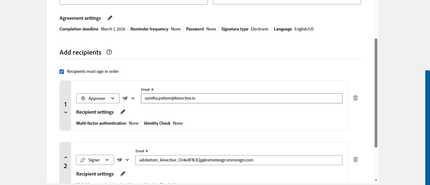 Actual sunitha.pattem@kinective.io Recipient is displayed successfully sunitha.pattem@kinective.io Expected