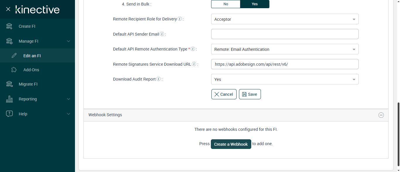 Manage Remote Agreement page displayed and 'Bulk sends' status displayed successfully [ScreenShot] |