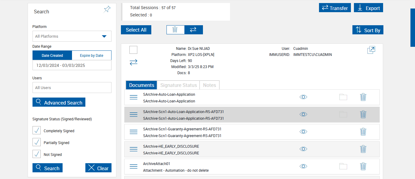 verify process XML Session With Archive Options in Search Active Sessions Page