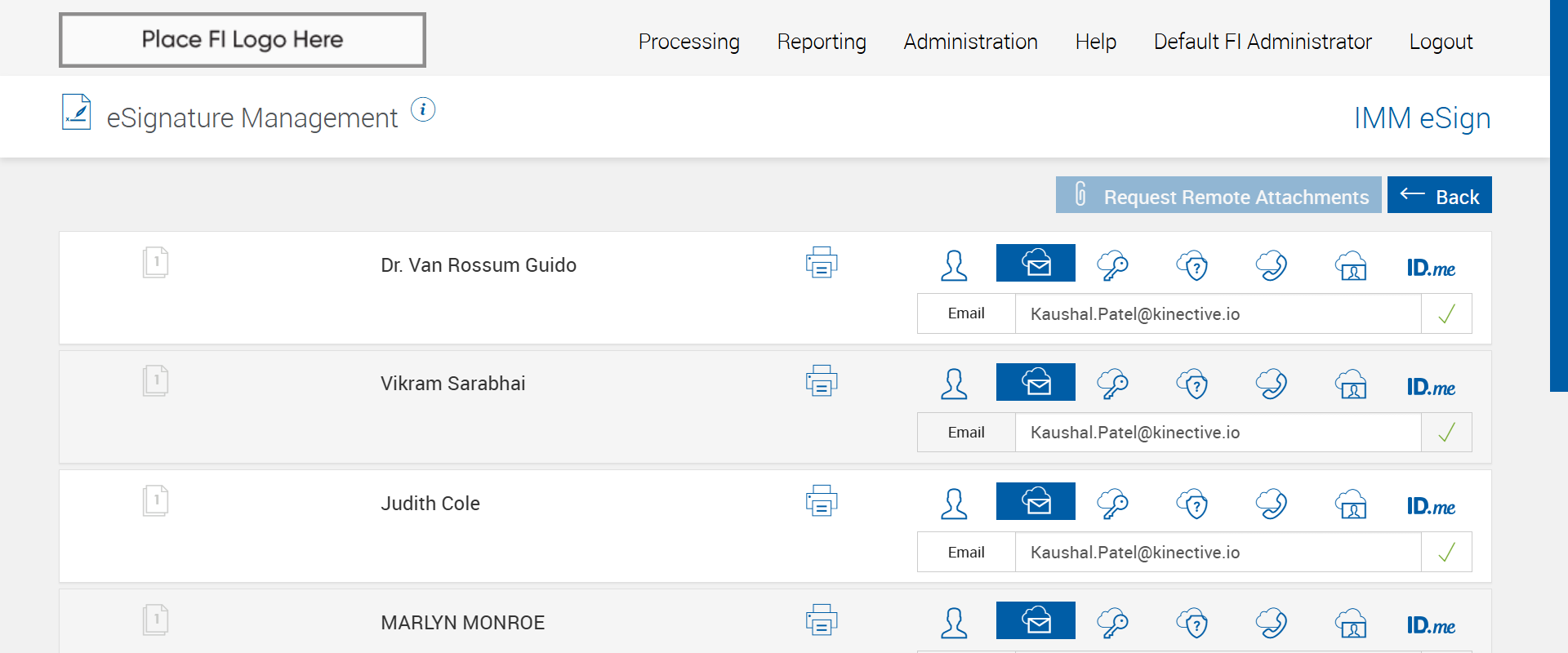 Successfully navigated to the 'eSignature Management' page [ScreenShot]