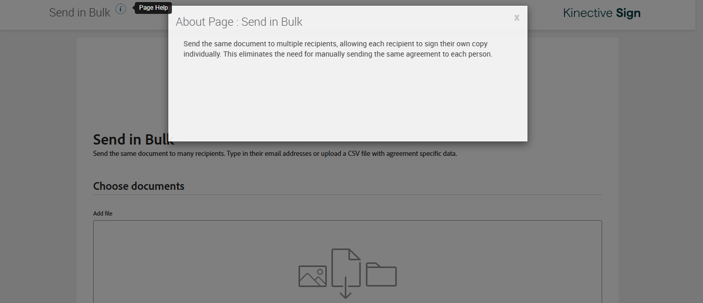Actual(Passed): Successfully verified 'Send in Bulk page' Tooltip Text Send the same document to multiple recipients, allowing each recipient to sign their own copy individually. This eliminates the need for manually sending the same agreement to each person.[ScreenShot] Expected: Expected tooltip header