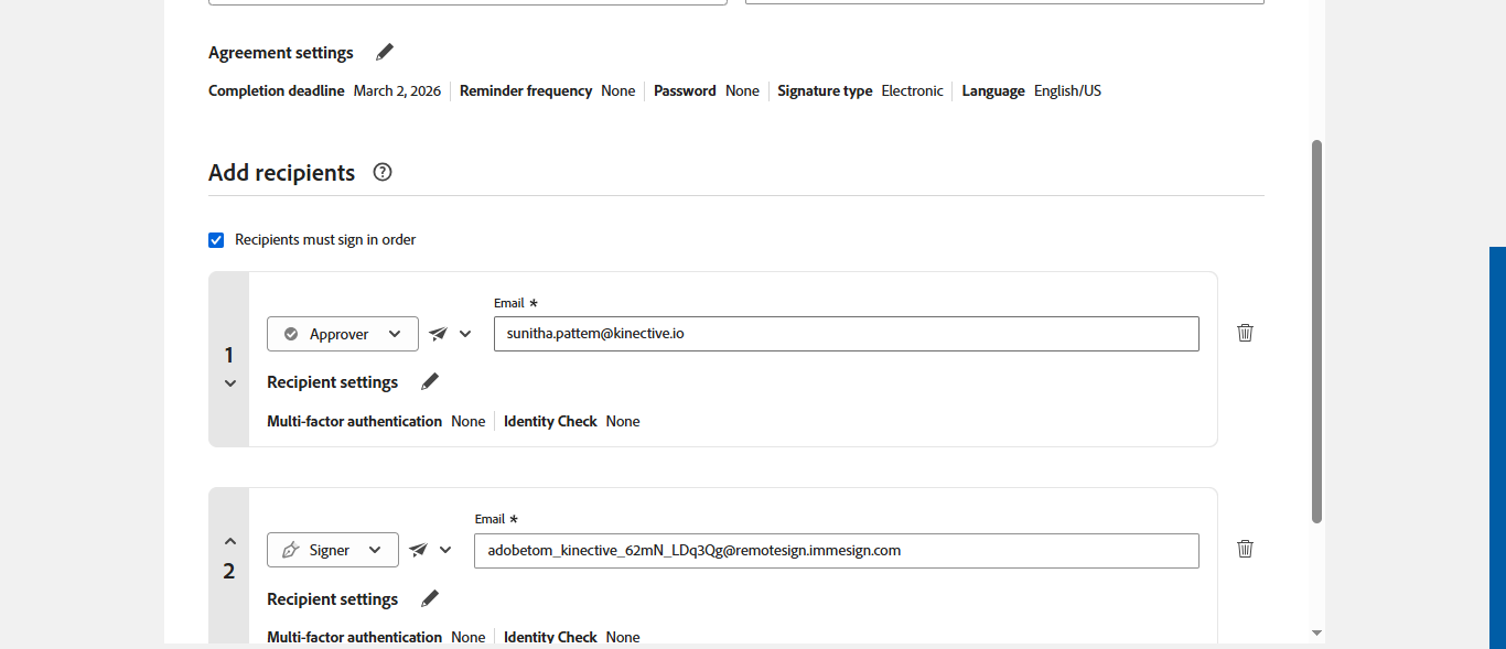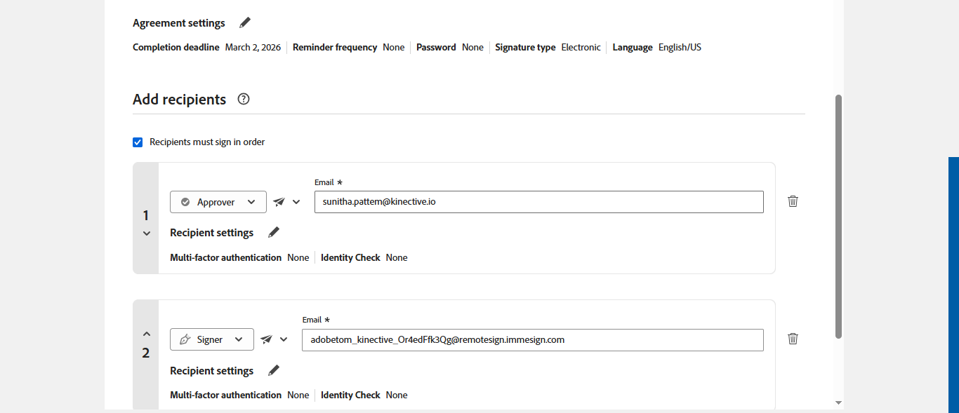 | 01:21:53 pm | The Bulk send "Remote Sign Document", containing 3 agreements, has been queued for sending to recipients. Successfully sent Bulk Agreements to Remote The Bulk send "Remote Sign Document", containing 3 agreements, has been queued for sending to recipients. [ScreenShot] | |