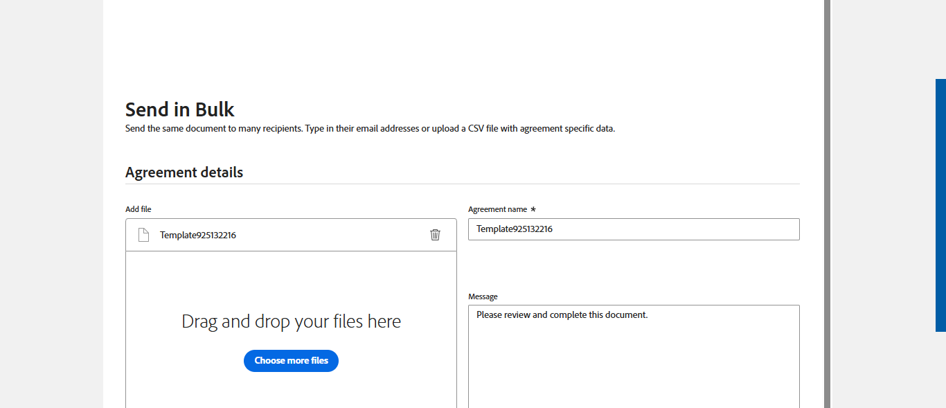 | 01:28:51 pm | Success message The Bulk send "Remote Sign Document", containing 3 agreements, has been queued for sending to recipients. | |
