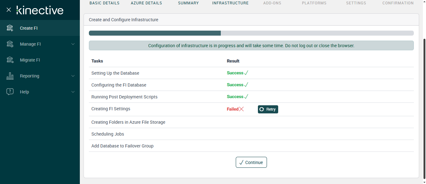 Successfully Configured 'Creating FI Settings'