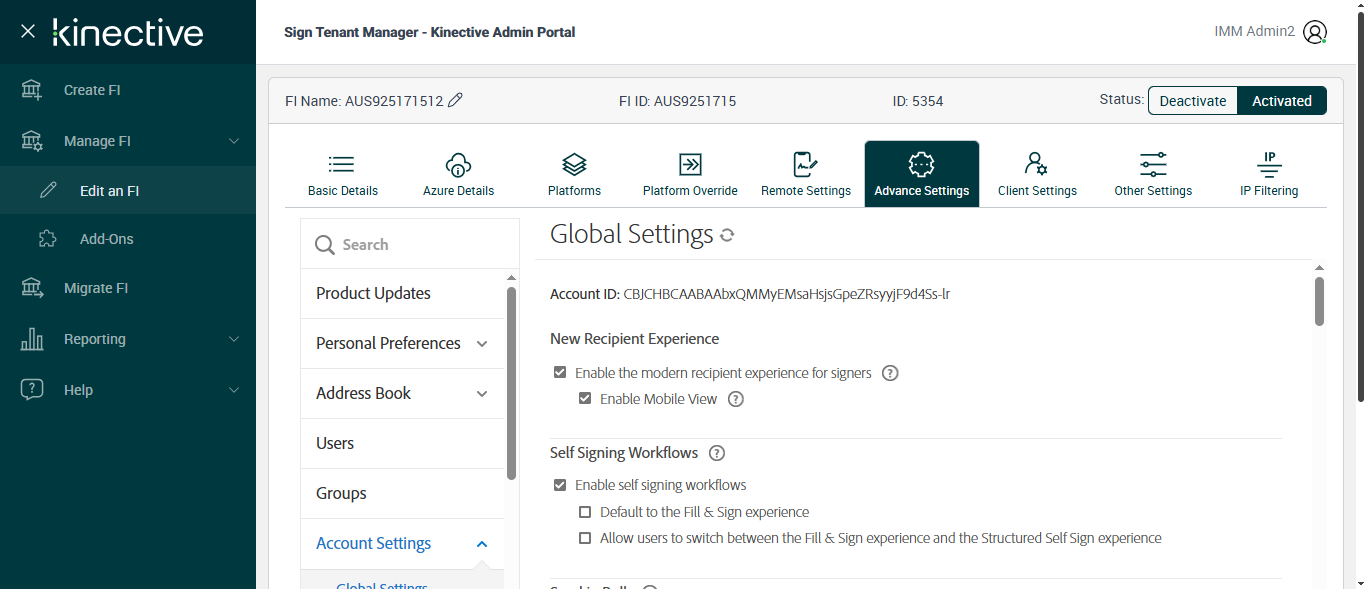 | {ZIP=, Login_User_ID=immadmin2@immesignqa.onmicrosoft.com, RemoteSettings=Ad Hoc Document,Web Form,Reusable Templates, FiStatus=, WebForm=, AdobeKey=, RemoteAgreement=, FiAdmin_LastName=, Name=AUS, LocalDomain=immtestcu, Edit_UserID=adobe, Adhoc_Doc=, eSignPlus=, RtmAuthTypes=, User_ID=, Fully_Intgrt_Key=, IntegrationType=Fully Integrated, AdvaceSettings=, SendInBulk=, RemoteSign=Enable, DrpSpot=, Manager User Email ID=, RemoteSign_ManageFI=, Reusable_Temp=, AZDomain=immtestcu.onmicrosoft.com, VerifastEDays=, LCEvalDays=, State=, LoanCoupon=, Login_Password=iMM@2023, Country=, ClientID=3AAABLblqZhCQLd3zpFZKjJbAHz9Iltx9H66PUQv34Itep5CnjFb_Ehcl4GOj6Tx0Y5dNSNcgnfoFtmjwvBuopeEtD4QtE_yU, Domain=, anonymusFI=true, FIID=AUS, Key=, FiAdmin_FirstName=fiadmin, Dictionary=TeSign;XPLN, Sign_RmtAgree_NotChecked=Send In Bulk, StarterEvalDays=, Description=verify Users Menu in Advance Settings Tab - Fully Integrated AnonymusFI, StarterChecks=, newFIID=, eSignURL=https://esignplusqa.immesign.com/TEAASP/Login.aspx, E-Vault=, Filepath=, TestID=verifyUsersMenuinAdvanceSettingsTab, PlusFI=, FiAdmin_UserID=fiadmin, EditFIAdmin_FName=adobe, FICreated=, User Email ID=, Verifast=, LacerPro=, Session URL=https://esignnonprod.immesign.com/qa/tenantmanager/, GlobalAdmin=cuadmin@immtestcu.onmicrosoft.com, TypeOfUser=, eValultDays=, UserName=, ManagerExist=, Manager User Display Name=, Manager User ID=, Sign_Password=nimdaif, DrpEvalDays=, EditFiadmin_LName=, Sign_RmtAgree_checked=Ad Hoc Document,Web Form,Reusable Templates,Manage Remote Agreements} |