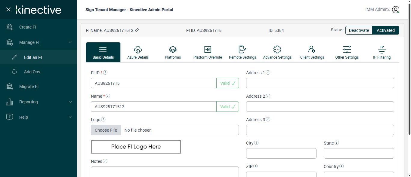 Do you want to proceed? Successfully validated deactivate message There are open sessions in this FI. Deactivating an FI will result in losing those sessions.