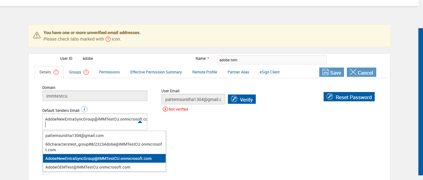 | {Tenant_URL=https://esignnonprod.immesign.com/qa/tenantmanager/#, EmailID=pattemsunitha1304@gmail.com, WorkflowSummary=, Login_User_ID=janedoe@immtestcu.onmicrosoft.com,adobe@immtestcu.onmicrosoft.com, Address=, FiStatus=, entraGroupEmail=60characterstest_group#&!2323Adobe@IMMTestCU.onmicrosoft.com,Adobemorethan60characterstest_group$#*&!2323Adobemorethan60test@IMMTestCU.onmicrosoft.com,AdobeNewEntraSyncGroup@IMMTestCU.onmicrosoft.com,, FiAdmin_LastName=tom, Add_Dictionary=, GRP_PermissionRadio=, Effect_Summary=, Name=, GRP_PermissionChkBox=, NewUser_ID=, LocalDomain=, PartiesToView=, NewName=, plusfi=false, User_ID=, Wkf_Permission=, Reset_Password=, NewDescription=, AZDomain=, Workflow=, City=, Delete_Dictionary=, AttachmentTypeOption=, NewEmailID=, State=, Login_Password=iMM@2022, eSignClient=, ClientID=, Domain=immtestcu, UserType=Admin,User, anonymusFI=false, NewGroup=, Tenant_User=immadmin2@immesignqa.onmicrosoft.com, FiAdmin_FirstName=adobe, Group=60 characters test _group #&!2323 Adobe,Adobe more than 60 characters test _group$#*&! 2323 Adobe more than 60 test,Adobe New Entra Sync Group,AccountCreation, Dictionary=, FI_Name=, Description=verify Group User Email When It Is Blank or more than 60 characters, AdditionalDomainName=, SearchUser=, Filepath=, TestID=verifyGroupUserEmailWhenItIsBlankOrMoreThan60Characters, entraGroup=true, FiAdmin_UserID=, Dictionary_Code=, FItype=Unified, integrationType=Fully Integrated, IndexSource=, Access_Password=P@ssword1, UserURL2=, Inbox_Permission=, Confirm_Reset_Password=, AdditionalLocalDomainName=, Notes=, Inbox=, GlobalAdmin=, Path=, Copy_User_ID=, Tenant_Password=iMM@2023, Enter_eSignClient=, ZipCode=, FI_ID=adobeuser, Confirm_Password=P@ssword1, CasesUser=, Tab=, UserURL=, Copy_Tab=, ADUserEmail=Not Blank,Not Blank,Not Blank,Blank} |