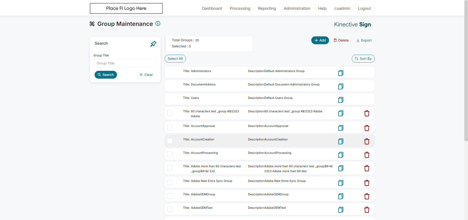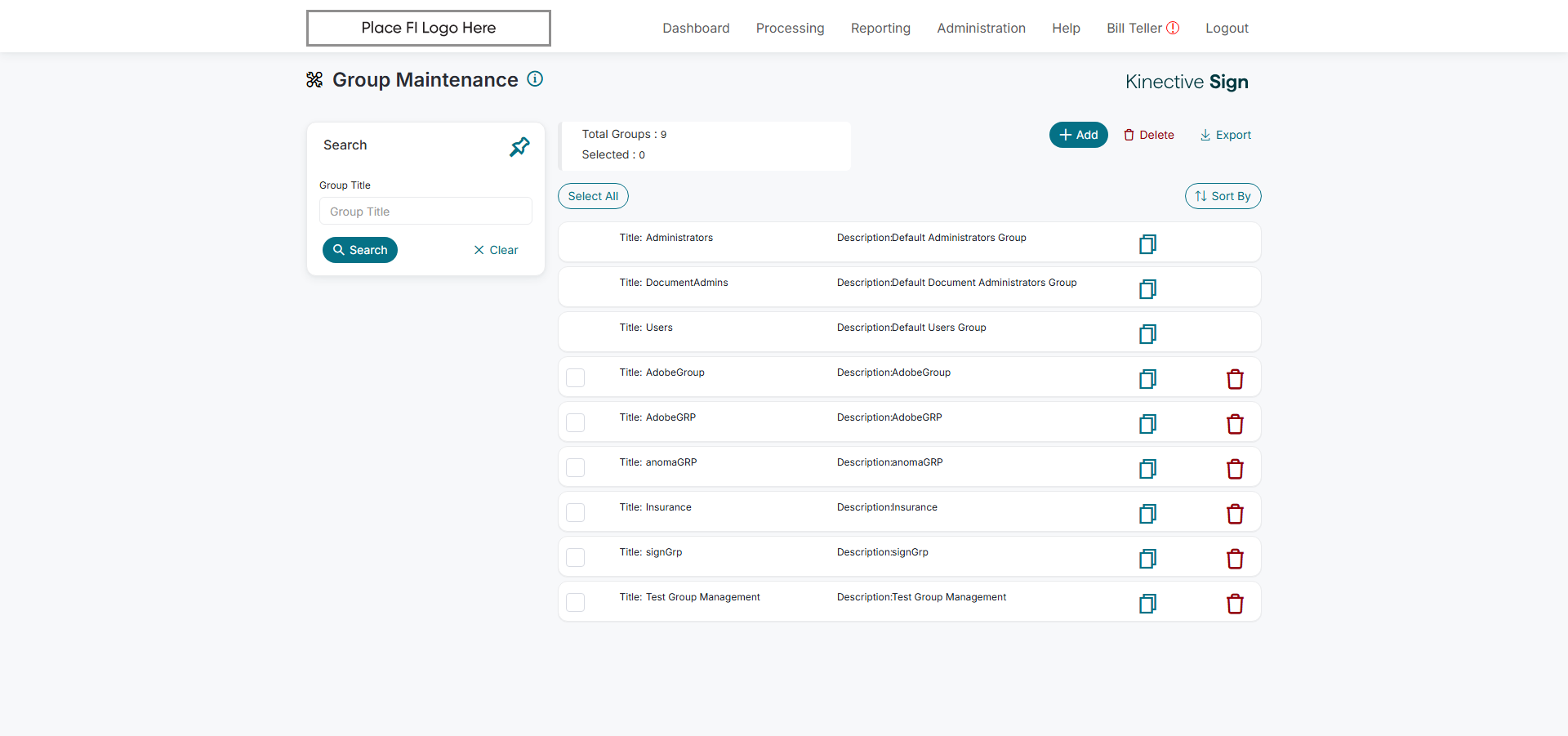 Successfully navigated to the 'Group Maintenance' page [ScreenShot]