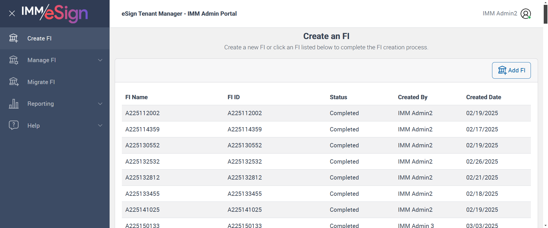 Successfully navigated to 'Manage FI' page [ScreenShot]