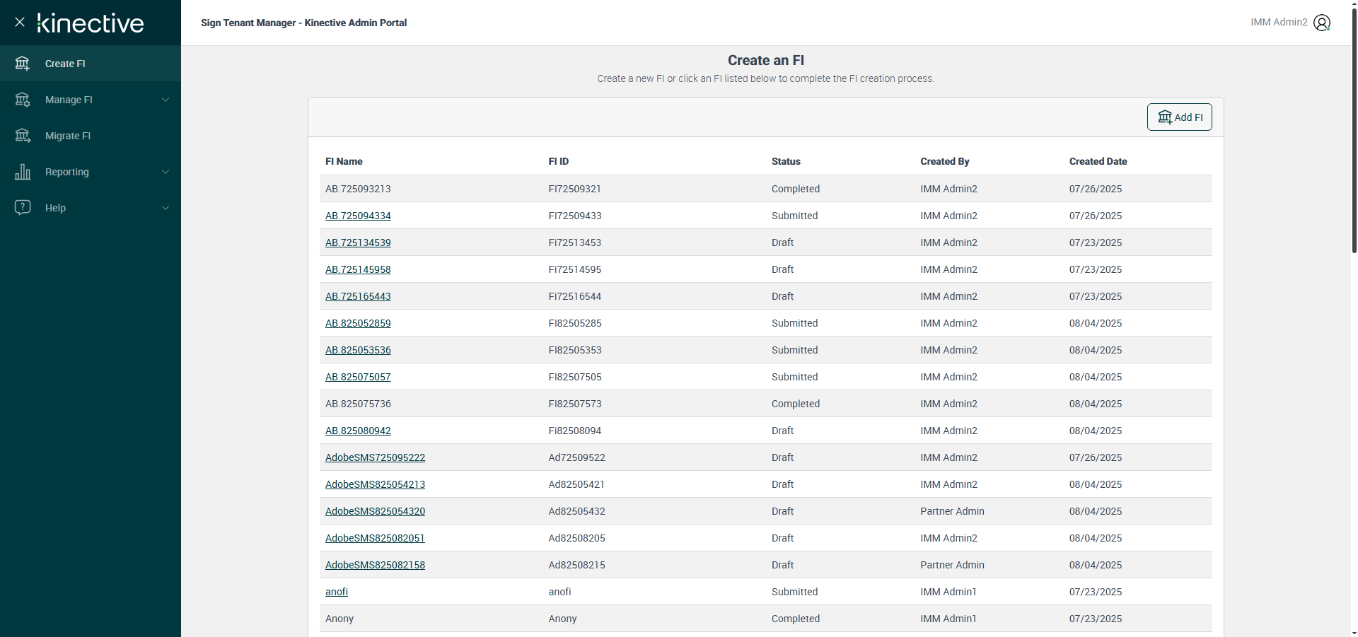 Successfully navigated to 'Create an FI' page [ScreenShot]