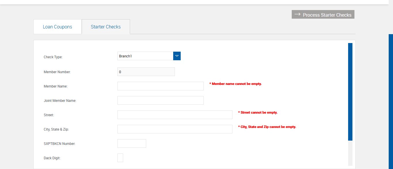 Navigated to Starter Checks Page