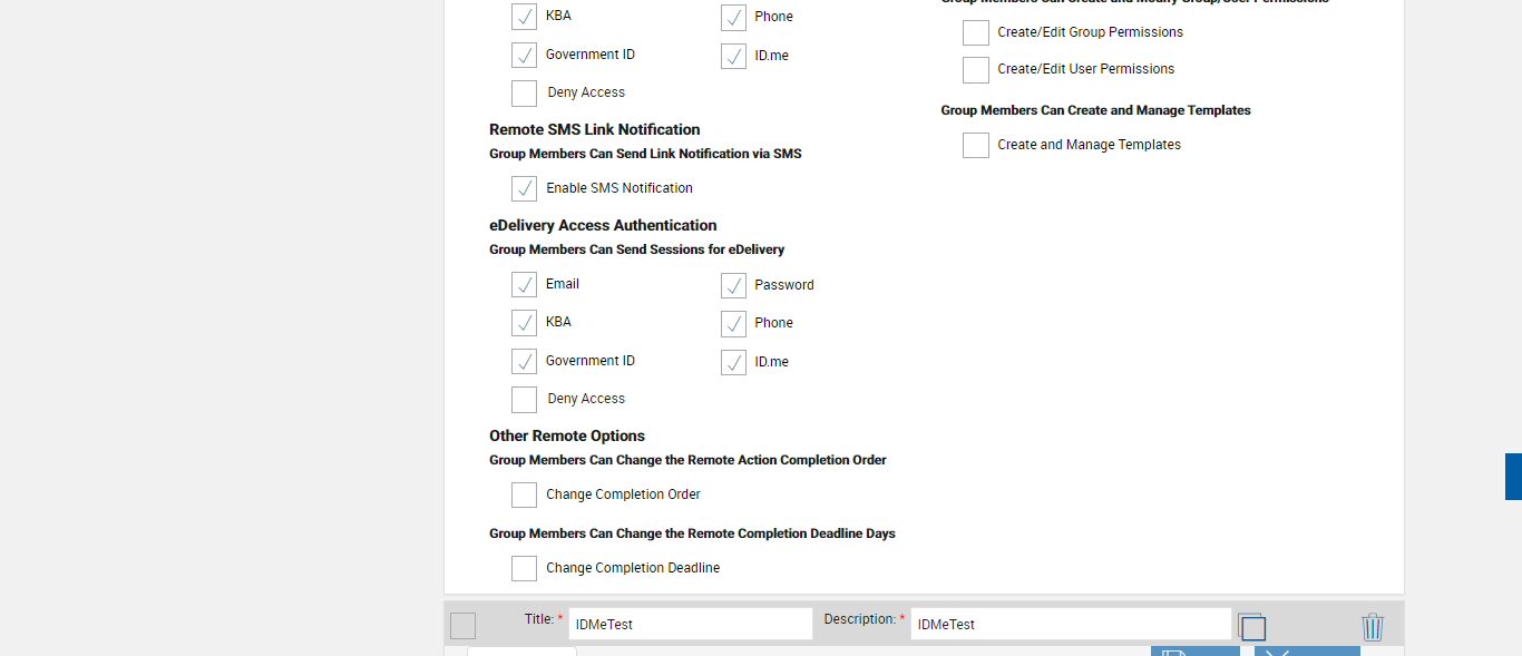 **** Verify Remote Access Authentication and eDeliver Authentication Remote ID Me in Group Maintenance **** |