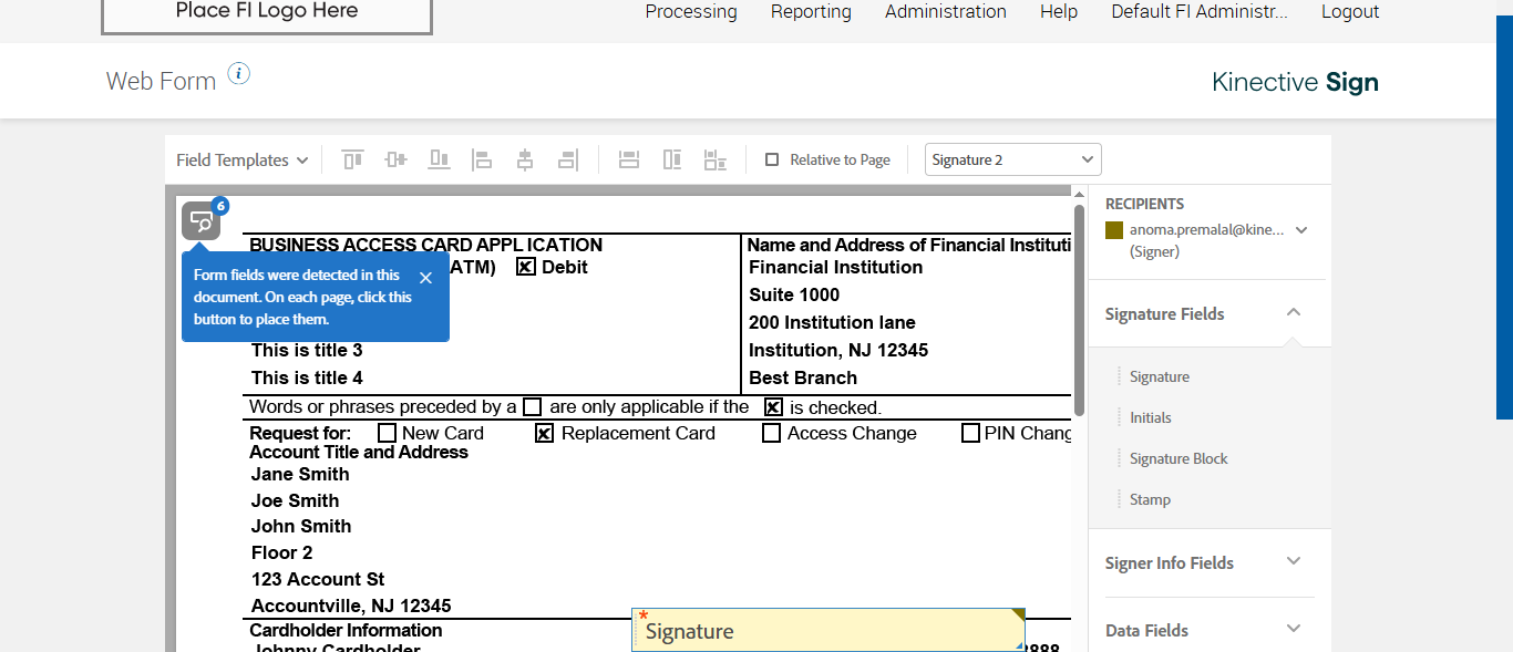 Signature field is displayed [ScreenShot]