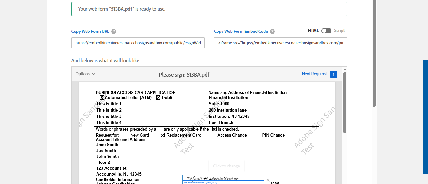 ({templateType=, Group=, Description=verifyCreatingWebForms- Sign Only Fi Anonymus - Role - Signer, Email=anoma.premalal@kinective.io, Platform=, Message=Adhoc Docs, RemoteSettings=, Auth_Factors=, KBA_Data=, User_Password=nimdaif, Admin1_UserId=, RemoteFeature=, TM_User_Name=, Local_AdDomain=, Filepath=src/main/resources/testdata/files/AdobeOEM/513BA.pdf, User_Type=, ManageWebform=, Name=DefaultFI Administrator, Admin1_LName=, TestID=verifyCreatingWebForms, FItype=, Required=, AgreementName=Remote Sign Document, TextField=, plusfi=, Document Names=513BA.pdf, IntegrationType=, Session URL=, ParticipantRole=Signer, Password=, Path=src/main/resources/testdata/files/DocumentExport.Zip, Admin1_FName=, New Column=, User_Name=fiadmin, FI_ID=Anony, whoCanUseTemplate=, NumOfAttachments=, Checked=, Folderpath=srcmainresourcestestdatafilesAdobeOEM, TMUrl=, ClientID=, anonymusFI=true, Key=})