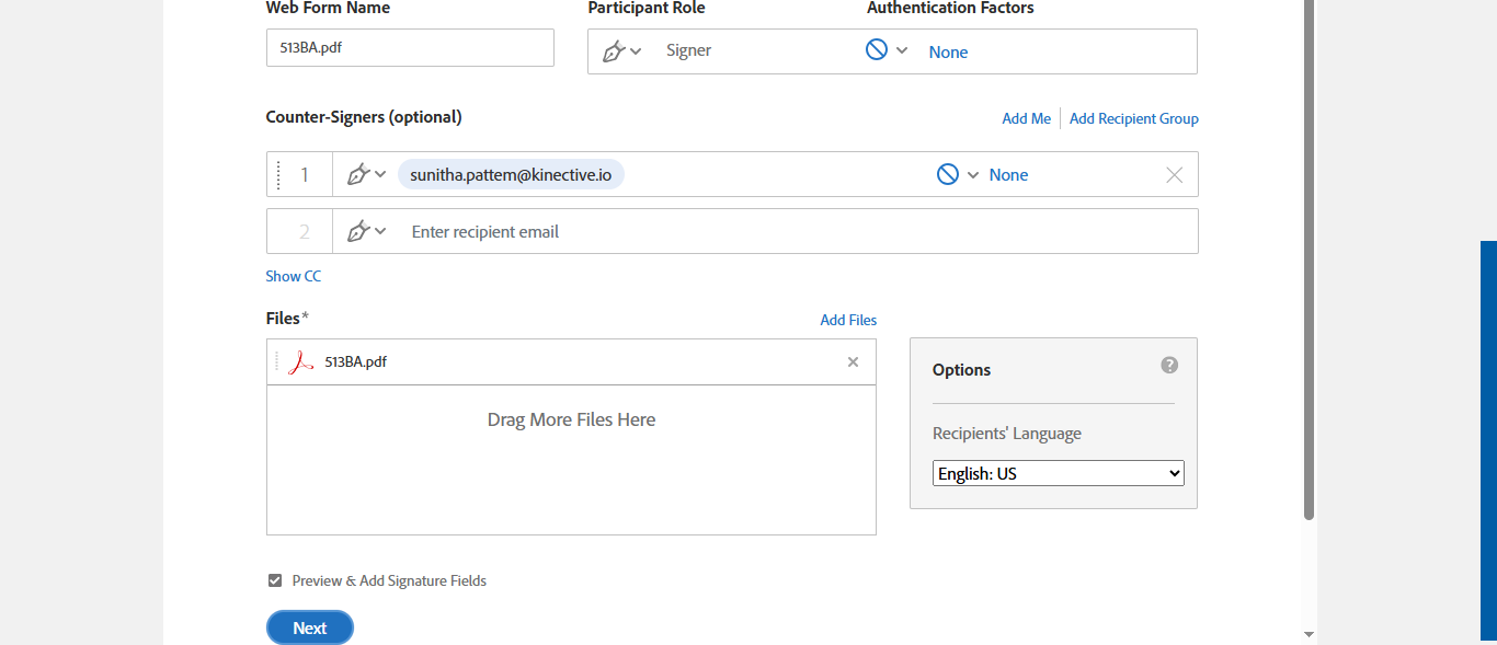 Preview and Add Signature field check box is checked [ScreenShot]