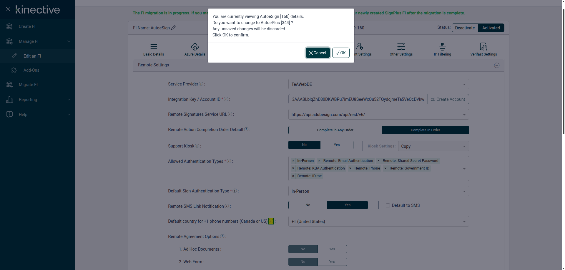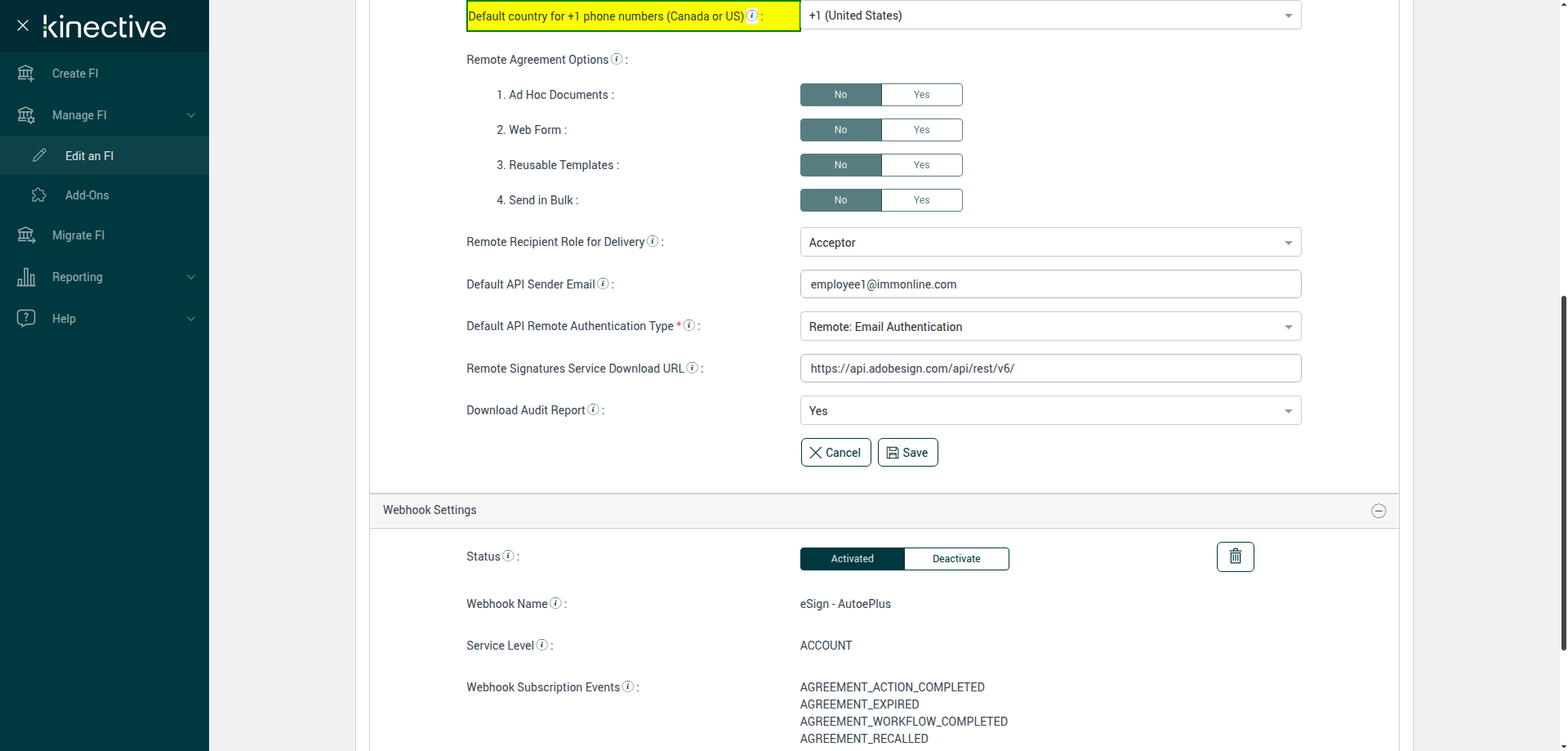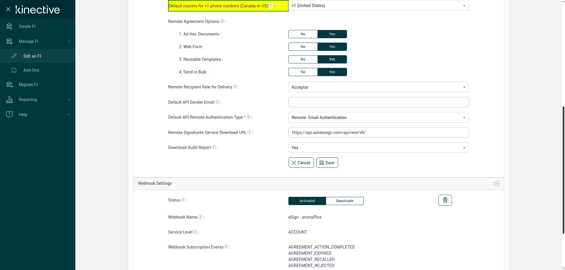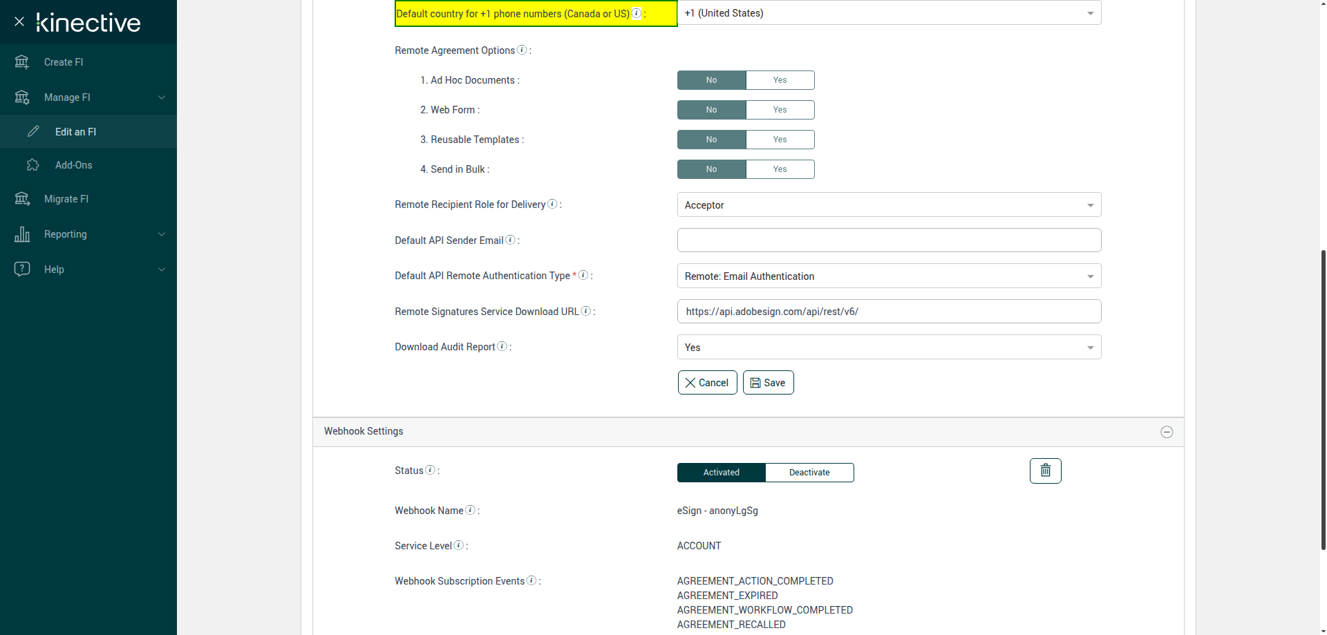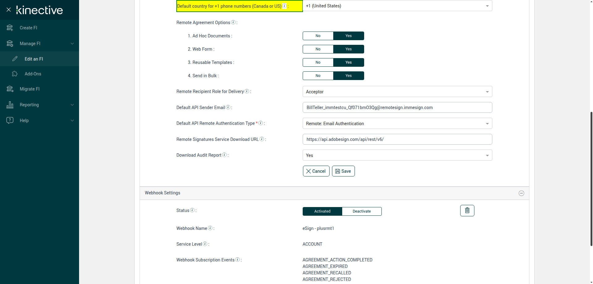 (Verify Manage FI Remote Settings Country Code Drop Down Existing FI)