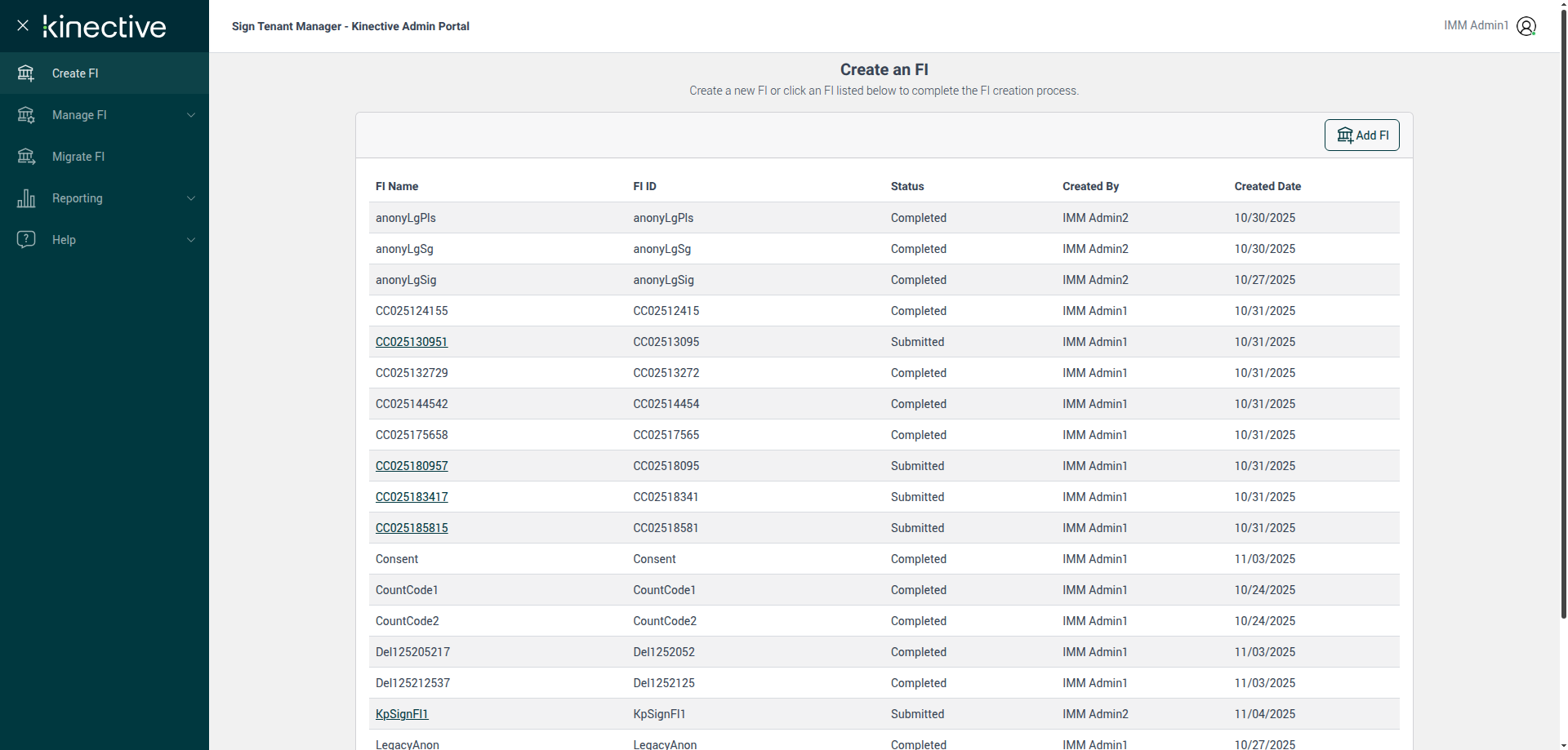 Successfully navigated to 'Manage FI' page [ScreenShot]