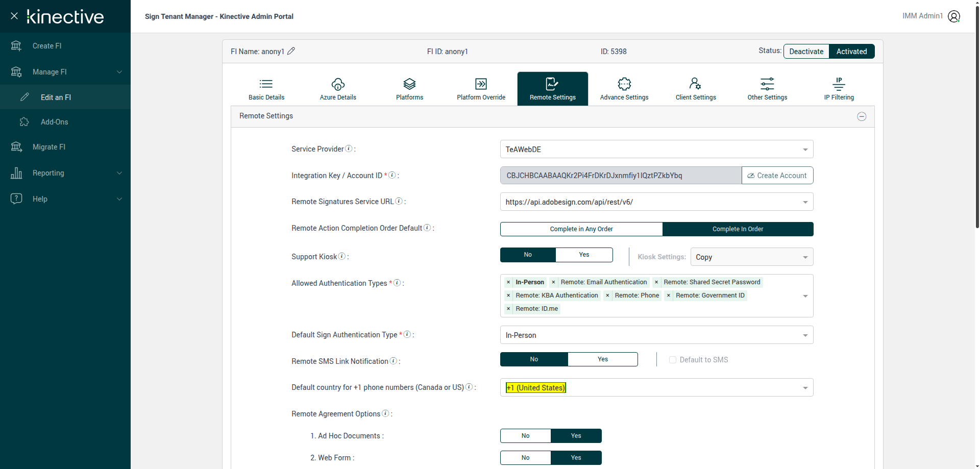 ({ZIP=, Login_User_ID=immadmin1@immesignqa.onmicrosoft.com, RemoteSettings=, FiStatus=, WebForm=, AdobeKey=, RemoteAgreement=, FiAdmin_LastName=, Name=anony1, LocalDomain=, Edit_UserID=, Adhoc_Doc=, eSignPlus=, RtmAuthTypes=, User_ID=, Fully_Intgrt_Key=, IntegrationType=, AdvaceSettings=, SendInBulk=, RemoteSign=, DrpSpot=, Manager User Email ID=, RemoteSign_ManageFI=, Reusable_Temp=, AZDomain=, VerifastEDays=, LCEvalDays=, State=, LoanCoupon=, Login_Password=iMM@2025, Country=, ClientID=, Domain=, anonymusFI=, FIID=anony1, Key=, FiAdmin_FirstName=, Dictionary=, Sign_RmtAgree_NotChecked=, StarterEvalDays=, Description=Verify Manage FI Remote Settings Country Code Drop Down Existing FI - Fully Integrated - Anonymous - SignFI, StarterChecks=, newFIID=anonyplus, eSignURL=, E-Vault=, Filepath=, TestID=verifyManageFIRemoteSettingsCountryCodeDropDownExistingFI, PlusFI=, FiAdmin_UserID=, EditFIAdmin_FName=, FICreated=, User Email ID=, Verifast=, LacerPro=, Session URL=https://esignnonprod.immesign.com/qa/tenantmanager/, GlobalAdmin=, TypeOfUser=, eValultDays=, UserName=, ManagerExist=, Manager User Display Name=, Manager User ID=, Sign_Password=, DrpEvalDays=, EditFiadmin_LName=, Sign_RmtAgree_checked=})