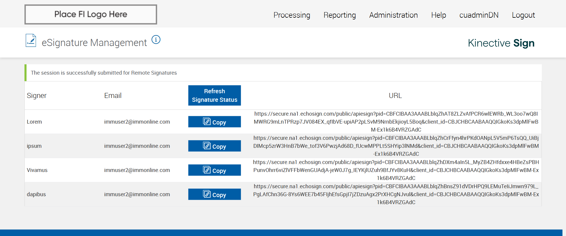 Successfully navigated to the 'eSignature Management' page [ScreenShot]