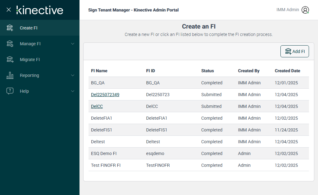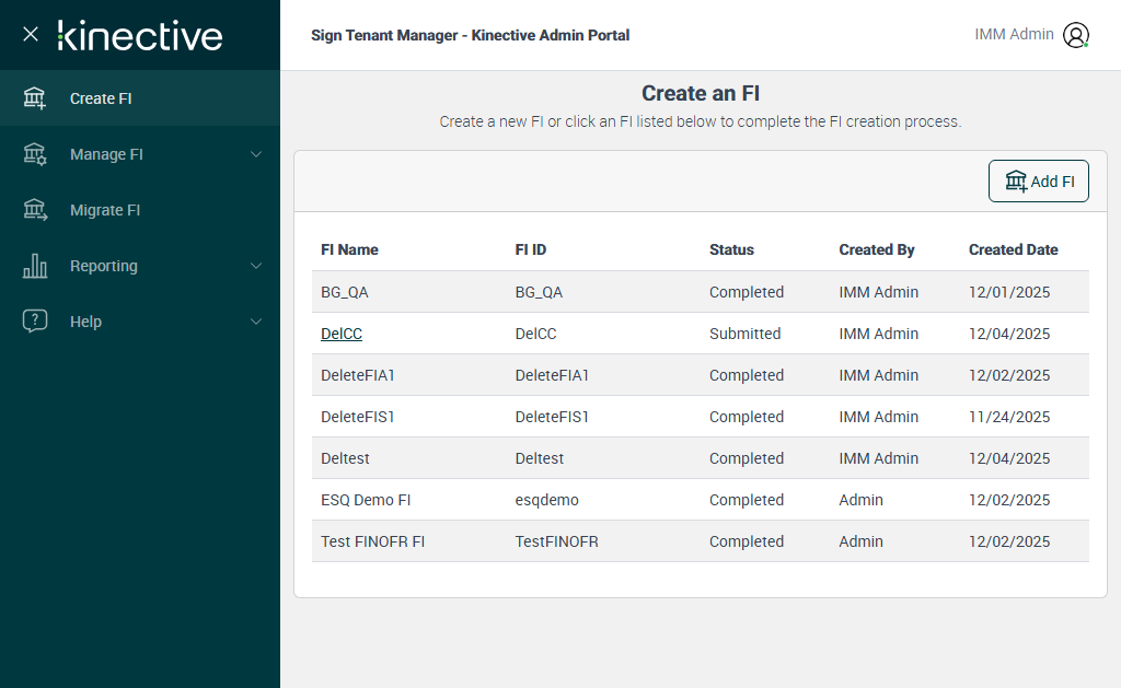 Successfully navigated to 'Create an FI' page [ScreenShot]
