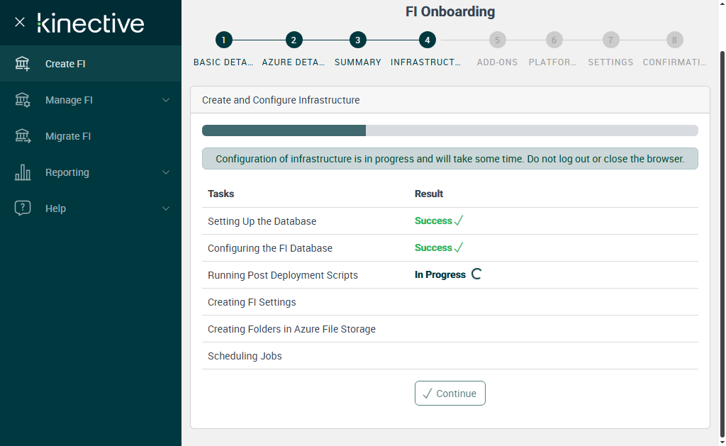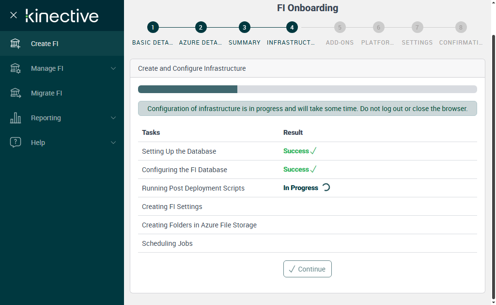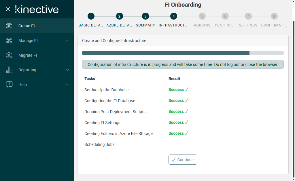 Successfully Configured 'Creating FI Settings'