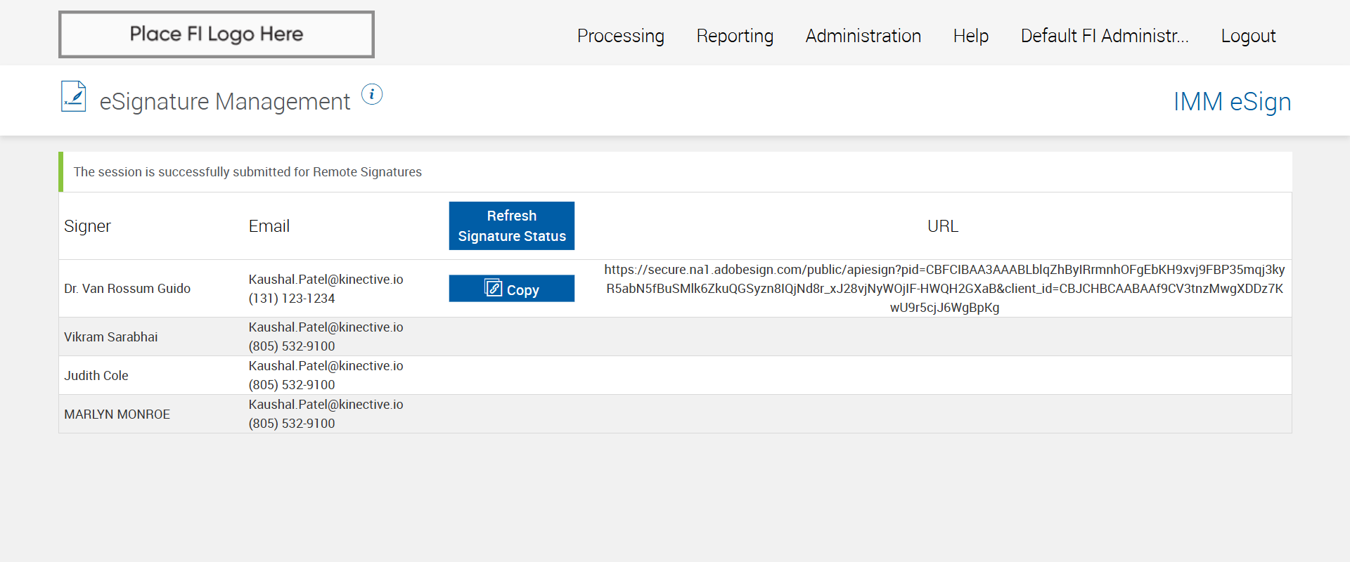 Successfully navigated to the 'eSignature Management' page [ScreenShot]