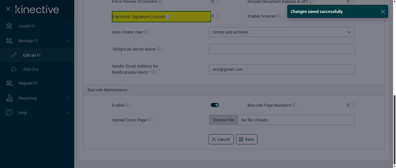 Actual(Passed): Successfully verified Electronic Signature Consent enabled after click on Cancel button[ScreenShot]