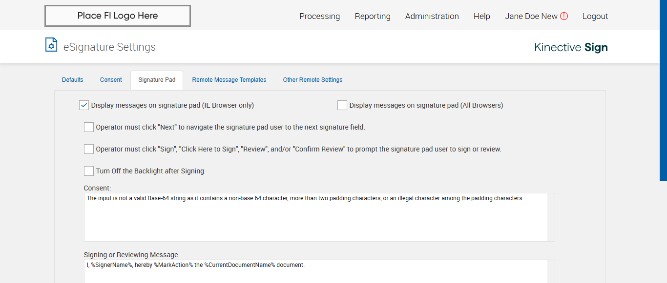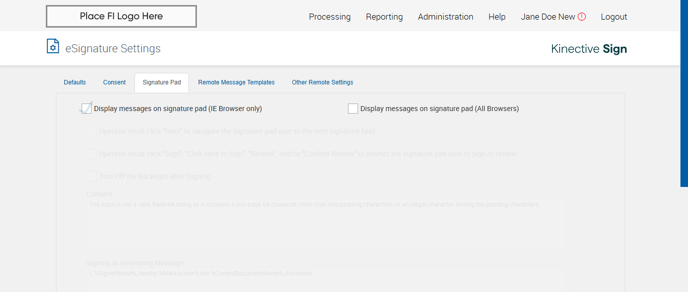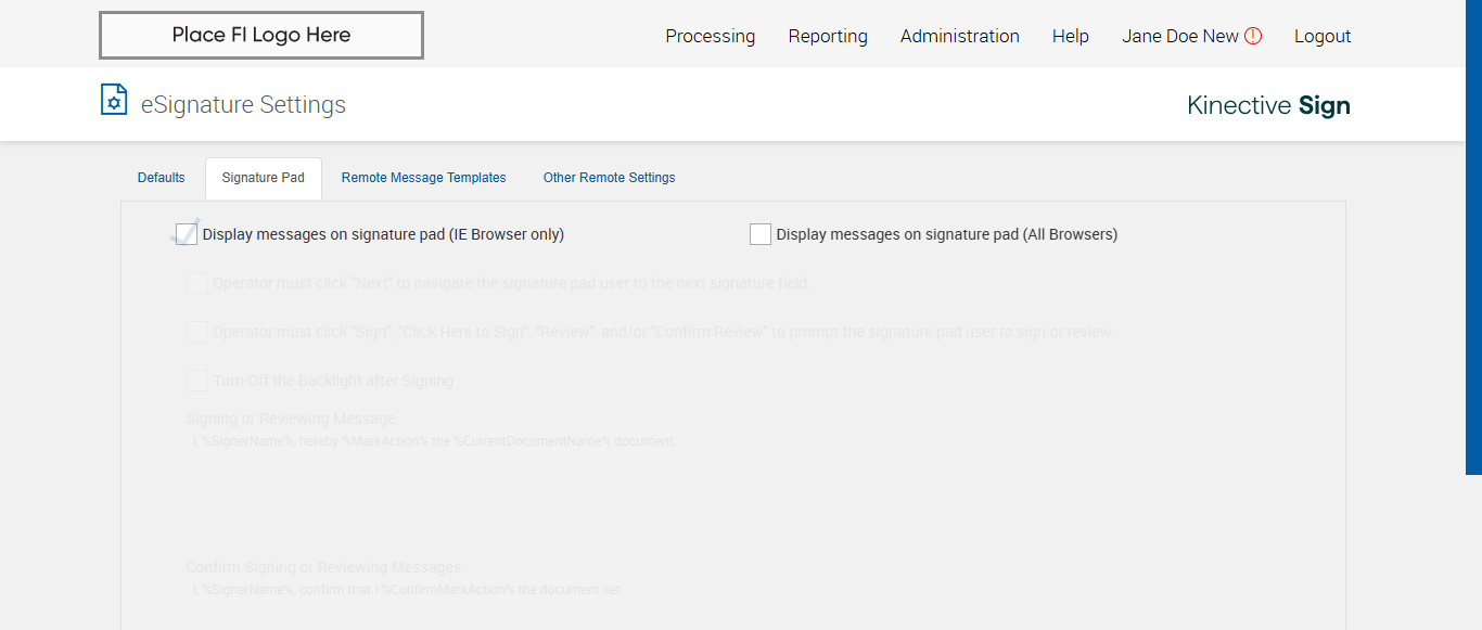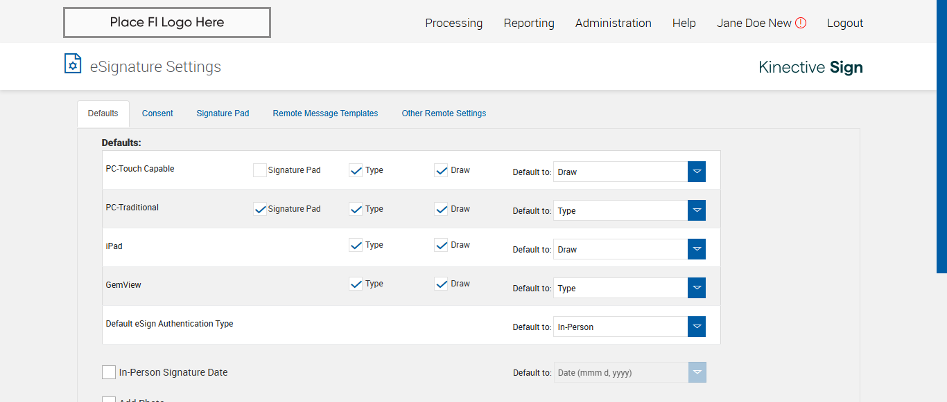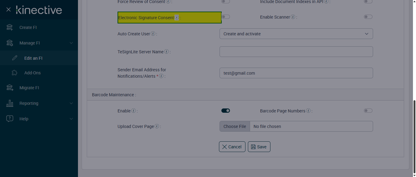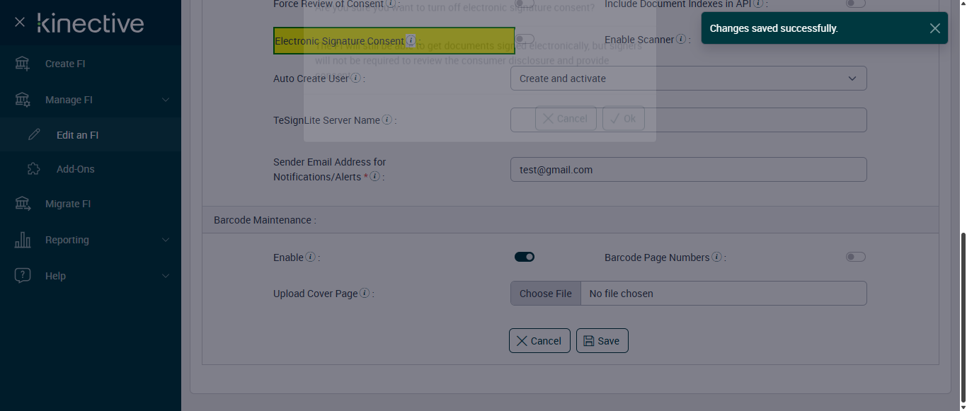 verify Electronic Signature Consent in Other Settings Page Existing FI - Fully Integrated - SignFI