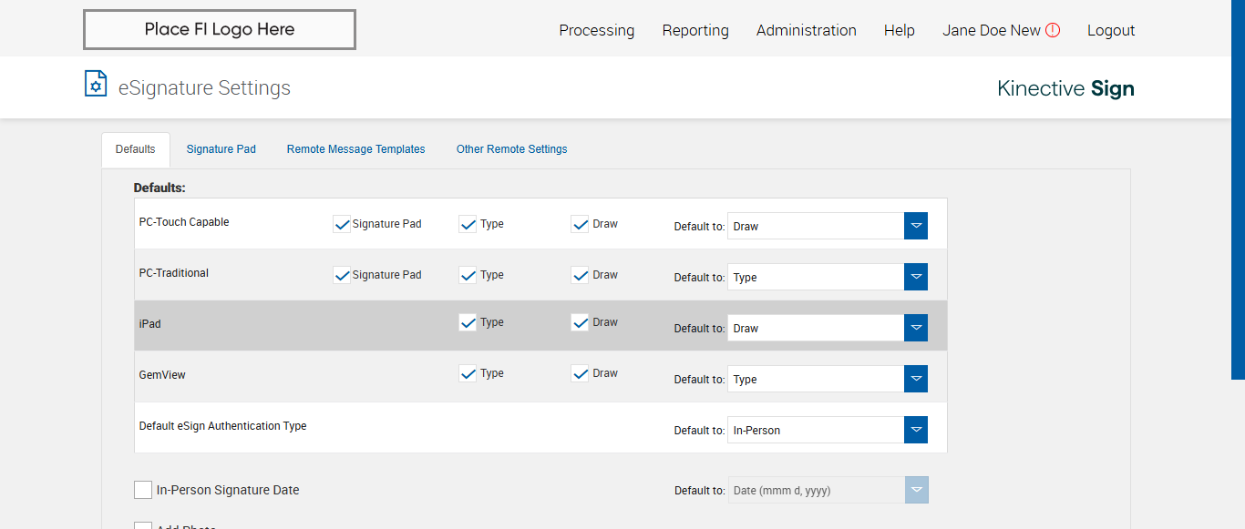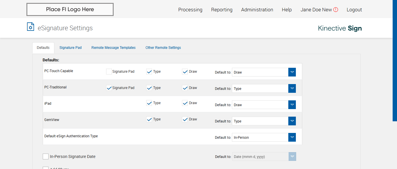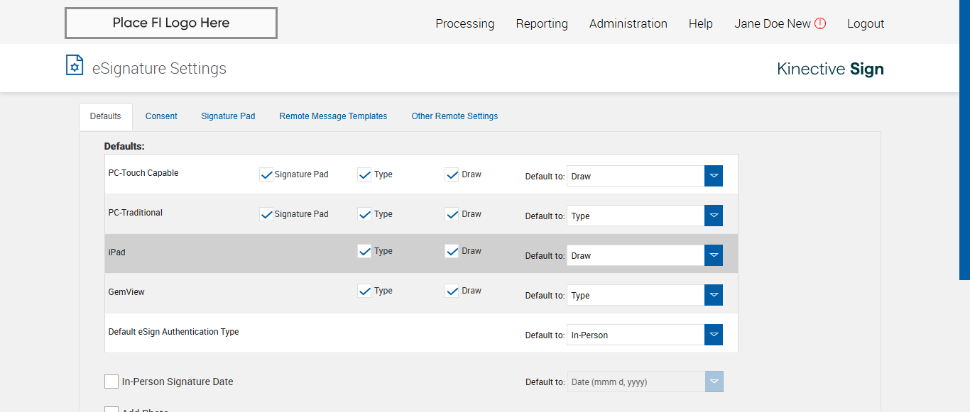 verify Electronic Signature Consent in Other Settings Page Existing FI - Fully Integrated - PlusFI