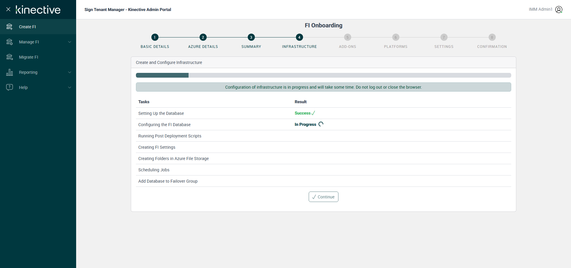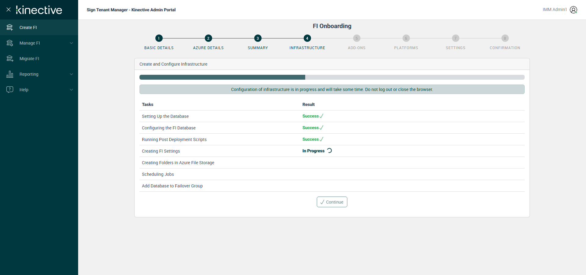 Successfully Configured 'Configuring the FI Database'