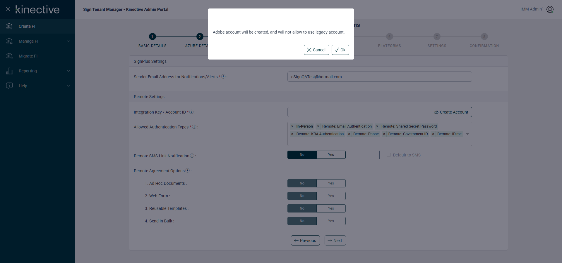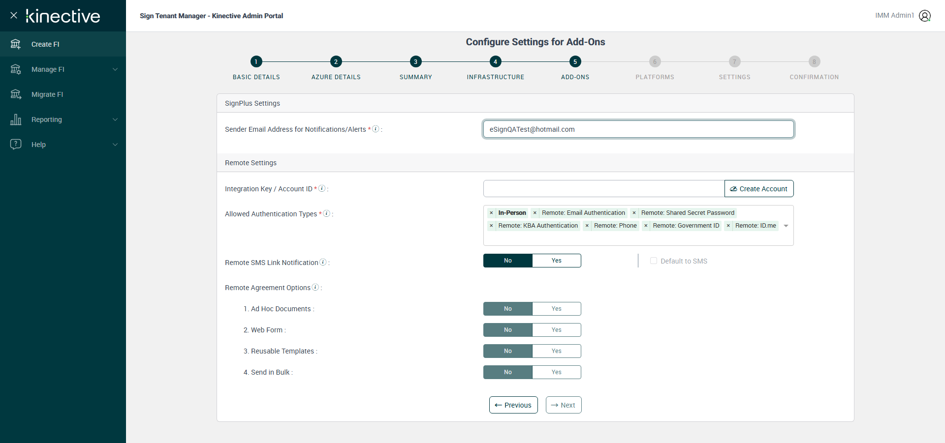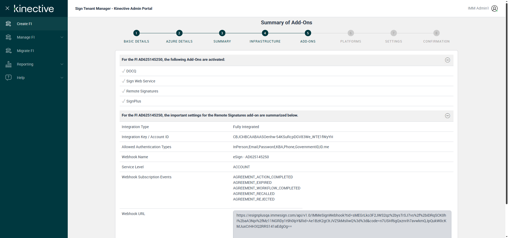 ({ZIP=, Login_User_ID=immadmin1@immesignqa.onmicrosoft.com, RemoteSettings=Ad Hoc Document,Web Form,Reusable Templates,Manage Remote Agreements, FiStatus=, WebForm=Yes, AdobeKey=, FiAdmin_LastName=Teller, Name=, LocalDomain=immtestcu, Adhoc_Doc=Yes, eSignPlus=Enable, RtmAuthTypes=, IntegrationType=Fully Integrated, NotUSerName=, SendInBulk=No, RemoteSign=Enable, DrpSpot=, Reusable_Temp=Yes, AZDomain=immtestcu.onmicrosoft.com, VerifastEDays=, City=, WrongAZDomain=, LCEvalDays=, State=, LoanCoupon=, Login_Password=iMM@2025, Country=, ClientID=, FIID=, Key=a958c406-5127-4d2e-9d24-d441b447fa6a, FiAdmin_FirstName=Bill, Dictionary=TeSign;XPLN, Sign_RmtAgree_NotChecked=Send in Bulk, StarterEvalDays=, Description=Verify Create Fi Complete Flow With Fully Integrated Account- Plus Fi, StarterChecks=, eSignURL=https://esignplusqa.immesign.com/TEAASP/Login.aspx, E-Vault=, Filepath=, TestID=VerifyCreateFiCompleteFlowWithOEMandLegacy, FiAdmin_UserID=billteller@immtestcu.onmicrosoft.com, Verifast=, LacerPro=, Notes=, Session URL=https://esignnonprod.immesign.com/qa/tenantmanager/, GlobalAdmin=cuadmin@immtestcu.onmicrosoft.com, TypeOfUser=, eValultDays=, MenuUserName=, ErrorMsg=, Address2=, Address3=, Address1=, Sign_Password=iMM@2022, UserTooltip=, WrongFIID=, DrpEvalDays=, Sign_RmtAgree_checked=Ad Hoc Document,Web Form,Reusable Templates,Manage Remote Agreements})