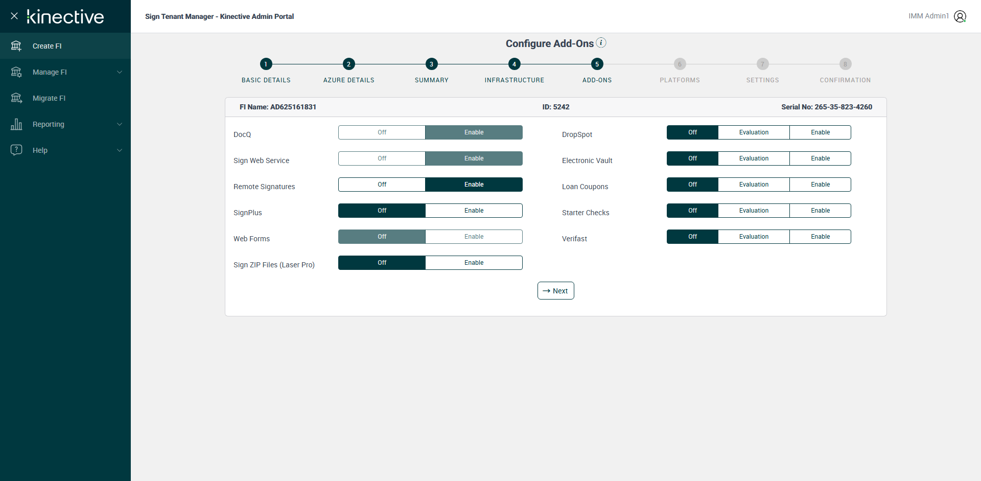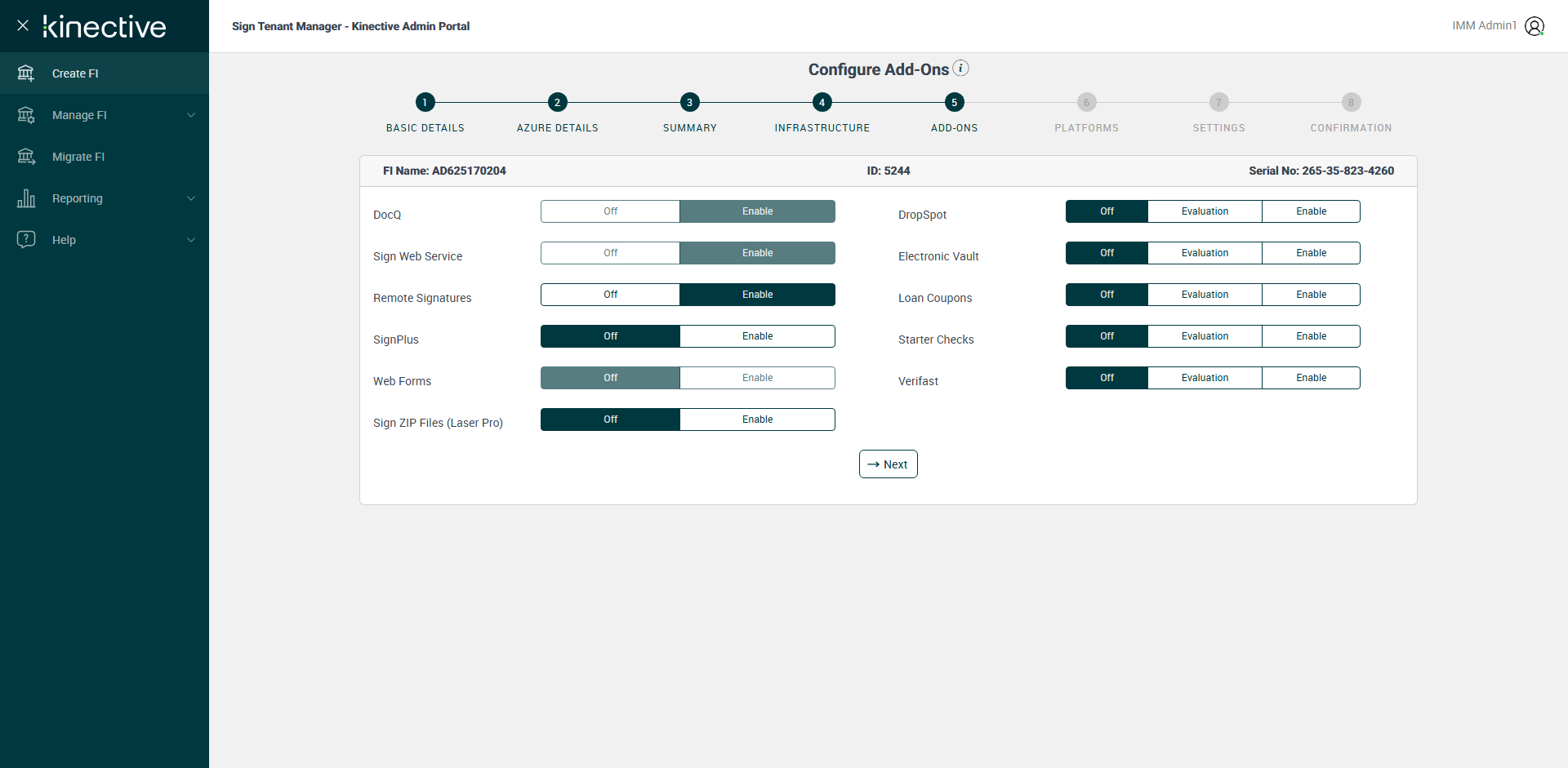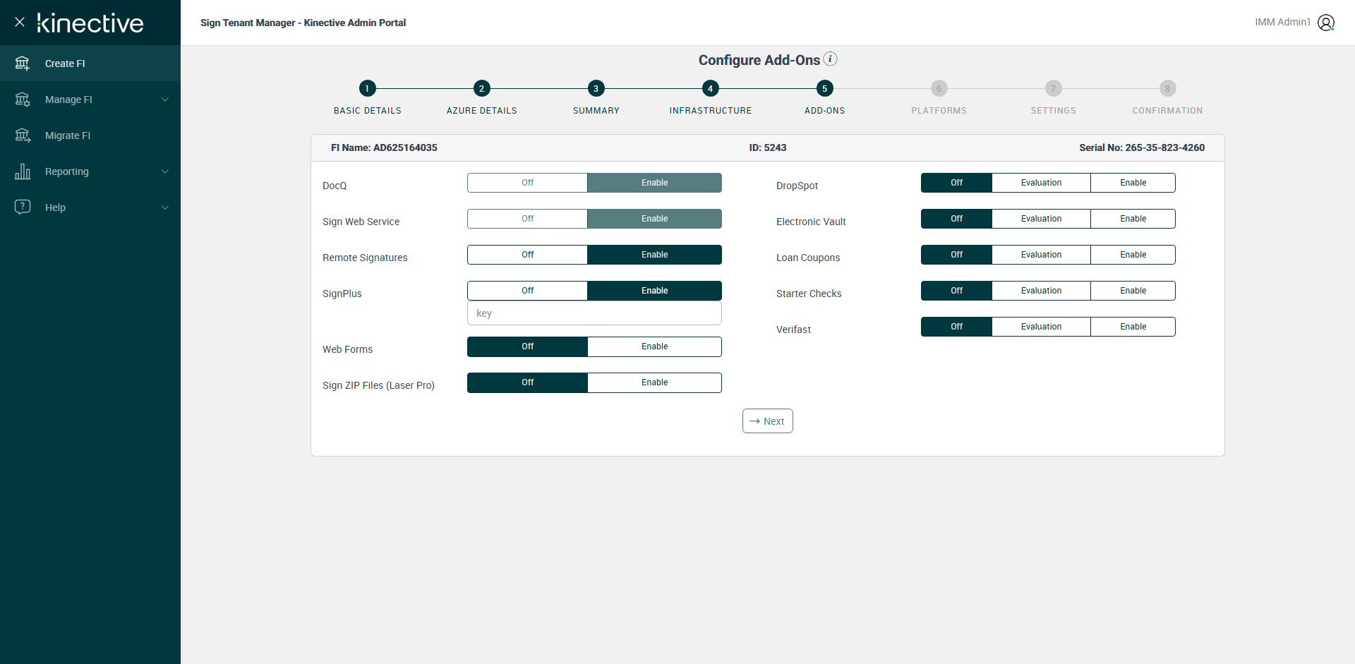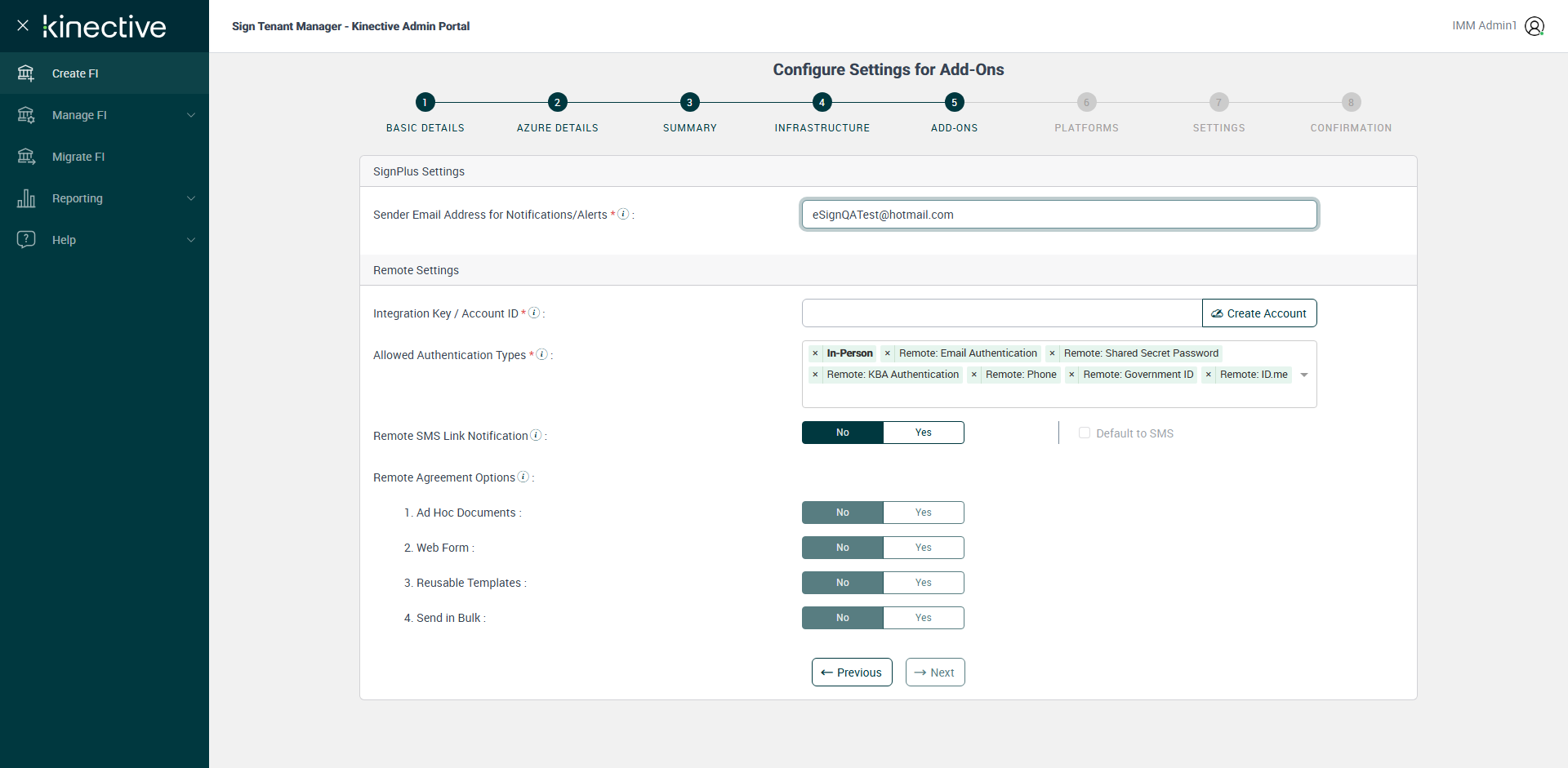 ({ZIP=, Login_User_ID=immadmin1@immesignqa.onmicrosoft.com, RemoteSettings=Ad Hoc Document,Web Form,Reusable Templates,Manage Remote Agreements, FiStatus=, WebForm=Yes, AdobeKey=, FiAdmin_LastName=Teller, Name=, LocalDomain=immtestcu, Adhoc_Doc=Yes, eSignPlus=Off, RtmAuthTypes=, IntegrationType=, NotUSerName=, SendInBulk=No, RemoteSign=Off, DrpSpot=, Reusable_Temp=Yes, AZDomain=immtestcu.onmicrosoft.com, VerifastEDays=, City=, WrongAZDomain=, LCEvalDays=, State=, LoanCoupon=, Login_Password=iMM@2025, Country=, ClientID=, FIID=, Key=, FiAdmin_FirstName=Bill, Dictionary=TeSign;XPLN, Sign_RmtAgree_NotChecked=Send in Bulk, StarterEvalDays=, Description=Verify Create Fi Complete Flow With when Remote Sign disabled, StarterChecks=, eSignURL=https://esignplusqa.immesign.com/TEAASP/Login.aspx, E-Vault=, Filepath=, TestID=VerifyCreateFiCompleteFlowWithOEMandLegacy, FiAdmin_UserID=billteller@immtestcu.onmicrosoft.com, Verifast=, LacerPro=, Notes=, Session URL=https://esignnonprod.immesign.com/qa/tenantmanager/, GlobalAdmin=cuadmin@immtestcu.onmicrosoft.com, TypeOfUser=, eValultDays=, MenuUserName=, ErrorMsg=, Address2=, Address3=, Address1=, Sign_Password=iMM@2022, UserTooltip=, WrongFIID=, DrpEvalDays=, Sign_RmtAgree_checked=Ad Hoc Document,Web Form,Reusable Templates,Manage Remote Agreements})