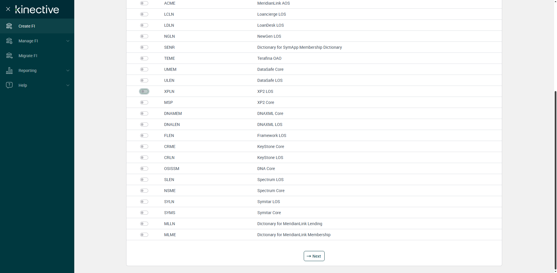 Successfully navigated to 'Create an FI' page [ScreenShot]