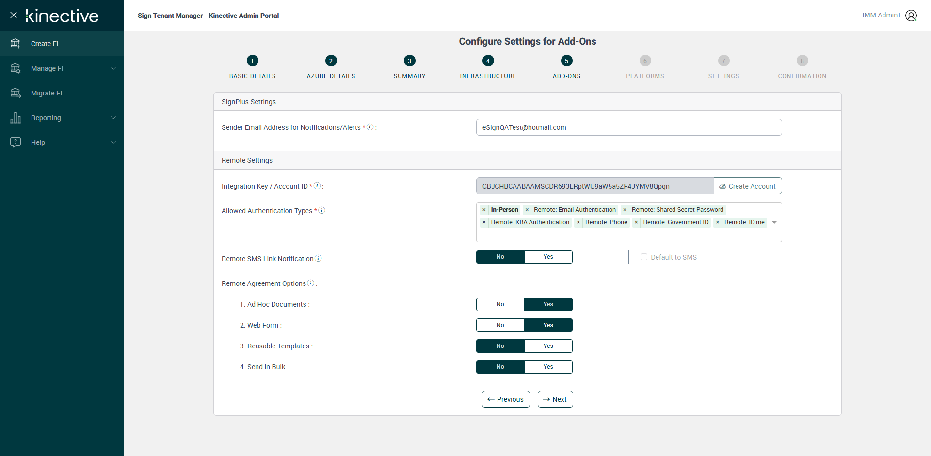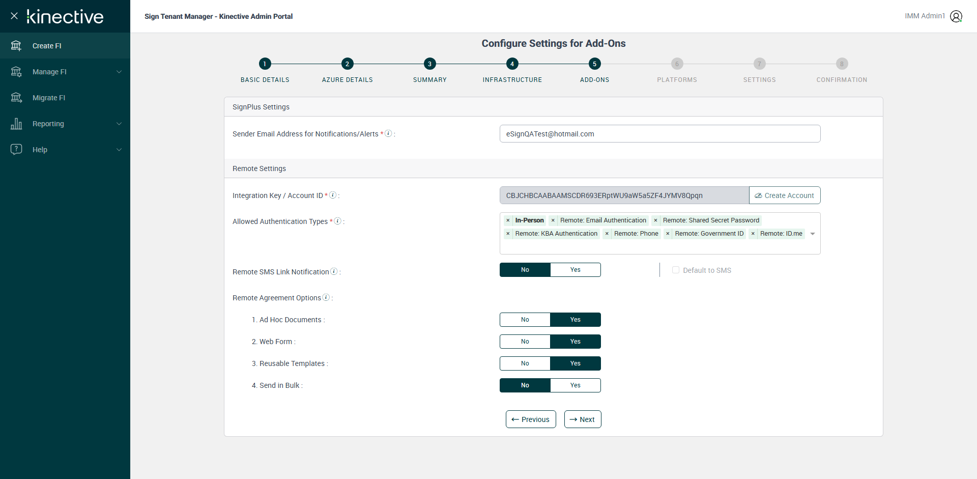 ({ZIP=, Login_User_ID=immadmin1@immesignqa.onmicrosoft.com, RemoteSettings=Manage Remote Agreements, FiStatus=, WebForm=No, AdobeKey=, FiAdmin_LastName=Teller, Name=, LocalDomain=immtestcu, Adhoc_Doc=No, eSignPlus=Off, RtmAuthTypes=, IntegrationType=Fully Integrated, NotUSerName=, SendInBulk=No, RemoteSign=Enable, DrpSpot=, Reusable_Temp=No, AZDomain=immtestcu.onmicrosoft.com, VerifastEDays=, City=, WrongAZDomain=, LCEvalDays=, State=, LoanCoupon=, Login_Password=iMM@2025, Country=, ClientID=, FIID=, Key=, FiAdmin_FirstName=Bill, Dictionary=TeSign;XPLN, Sign_RmtAgree_NotChecked=Ad Hoc Document,Web Form,Reusable Templates,Send in Bulk, StarterEvalDays=, Description=Verify Create Fi Complete Flow With Fully Integrated Account- Remote Agreement disabled, StarterChecks=, eSignURL=https://esignplusqa.immesign.com/TEAASP/Login.aspx, E-Vault=, Filepath=, TestID=VerifyCreateFiCompleteFlowWithOEMandLegacy, FiAdmin_UserID=billteller@immtestcu.onmicrosoft.com, Verifast=, LacerPro=, Notes=, Session URL=https://esignnonprod.immesign.com/qa/tenantmanager/, GlobalAdmin=cuadmin@immtestcu.onmicrosoft.com, TypeOfUser=, eValultDays=, MenuUserName=, ErrorMsg=, Address2=, Address3=, Address1=, Sign_Password=iMM@2022, UserTooltip=, WrongFIID=, DrpEvalDays=, Sign_RmtAgree_checked=Disabled})