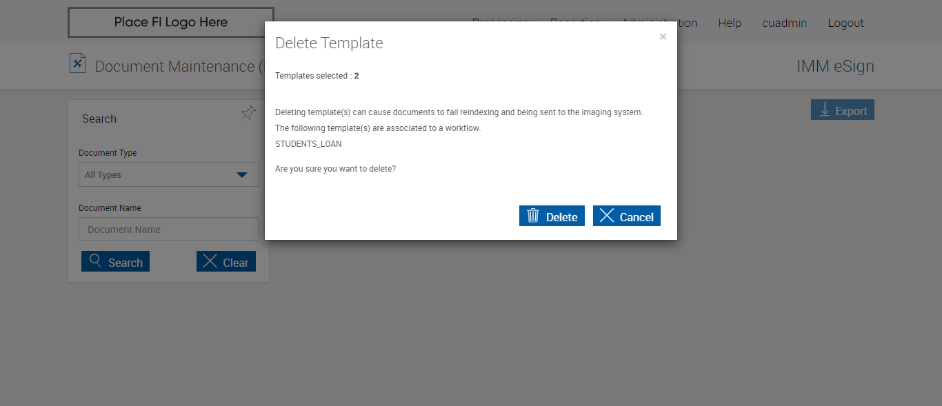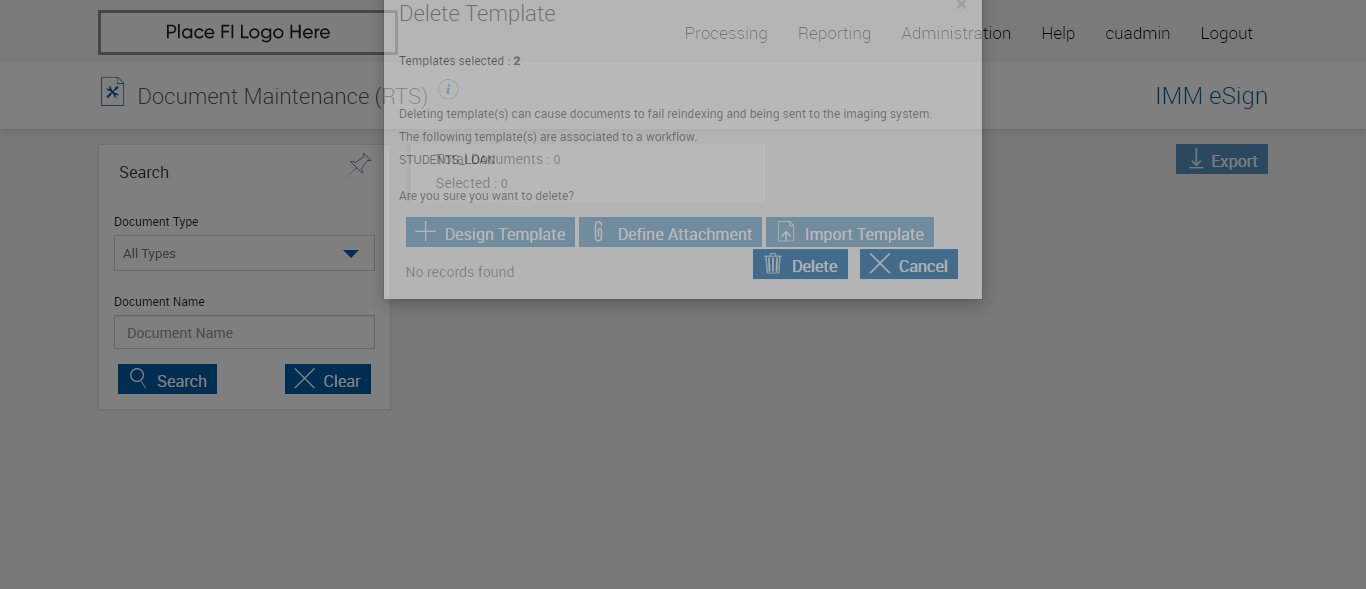 verifyExportAndDeletingTemplatesOnTheDocumentMaintenanceRTSPage
