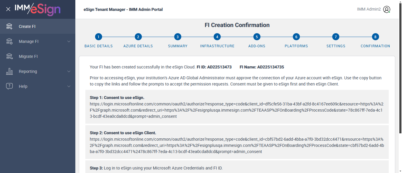 ({ZIP=, FiAdmin_FirstName=Bill,Jane, Dictionary=TeSign;XPLN, StarterEvalDays=, Description=Create Fi With Fi Admin1 and Fi Admin 2 for eSignPlus FI, Login_User_ID=immadmin2@immesignqa.onmicrosoft.com, FiStatus=Completed, StarterChecks=Off, eSignURL=https://esignplusqa.immesign.com/TEAASP/Login.aspx, E-Vault=Off, FiAdmin_LastName=Teller,Doe, Filepath=, Name=AD, LocalDomain=immtestcu, TestID=CreateFiwithFiAdmin1andFiAdmin2, FiAdmin_UserID=billteller@immtestcu.onmicrosoft.com,janedoe@immtestcu.onmicrosoft.com, Verifast=Off, eSignPlus=Enable, LacerPro=off, RtmAuthTypes=InPerson,Email,Password,KBA,Phone,GovernmentID,, Notes=, Session URL=https://esignnonprod.immesign.com/qa/tenantmanager/, GlobalAdmin=cuadmin@immtestcu.onmicrosoft.com, RemoteSign=Enable, TypeOfUser=IMM Admin2, eValultDays=, DrpSpot=Off, ErrorMsg=, Address2=, AZDomain=immtestcu.onmicrosoft.com, Address3=, VerifastEDays=, Address1=, City=, WrongAZDomain=, LCEvalDays=, State=, LoanCoupon=Off, Login_Password=iMM@2022, WrongFIID=, DrpEvalDays=, Country=, ClientID=3AAABLblqZhCQLd3zpFZKjJbAHz9Iltx9H66PUQv34Itep5CnjFb_Ehcl4GOj6Tx0Y5dNSNcgnfoFtmjwvBuopeEtD4QtE_yU, FIID=AD, Key=a958c406-5127-4d2e-9d24-d441b447fa6a})