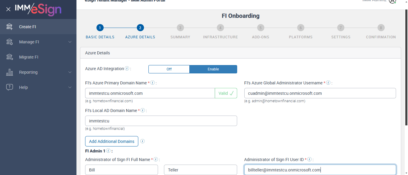 ({ZIP=, FiAdmin_FirstName=Bill, Dictionary=TeSign;XPLN, StarterEvalDays=, Description=Create Fi With Fi Admin1 When Remote Signature Disabled, Login_User_ID=immadmin2@immesignqa.onmicrosoft.com, FiStatus=Completed, StarterChecks=Off, eSignURL=https://esignplusqa.immesign.com/TEAASP/Login.aspx, E-Vault=Off, FiAdmin_LastName=Teller, Filepath=, Name=AD, LocalDomain=immtestcu, TestID=CreateFiwithFiAdmin1andFiAdmin2, FiAdmin_UserID=billteller@immtestcu.onmicrosoft.com, Verifast=Off, eSignPlus=Off, LacerPro=off, RtmAuthTypes=InPerson,Email,Password,KBA,Phone,GovernmentID,, Notes=, Session URL=https://esignnonprod.immesign.com/qa/tenantmanager/, GlobalAdmin=cuadmin@immtestcu.onmicrosoft.com, RemoteSign=off, TypeOfUser=IMM Admin2, eValultDays=, DrpSpot=Off, ErrorMsg=, Address2=, AZDomain=immtestcu.onmicrosoft.com, Address3=, VerifastEDays=, Address1=, City=, WrongAZDomain=, LCEvalDays=, State=, LoanCoupon=Off, Login_Password=iMM@2022, WrongFIID=, DrpEvalDays=, Country=, ClientID=3AAABLblqZhCQLd3zpFZKjJbAHz9Iltx9H66PUQv34Itep5CnjFb_Ehcl4GOj6Tx0Y5dNSNcgnfoFtmjwvBuopeEtD4QtE_yU, FIID=AD, Key=})